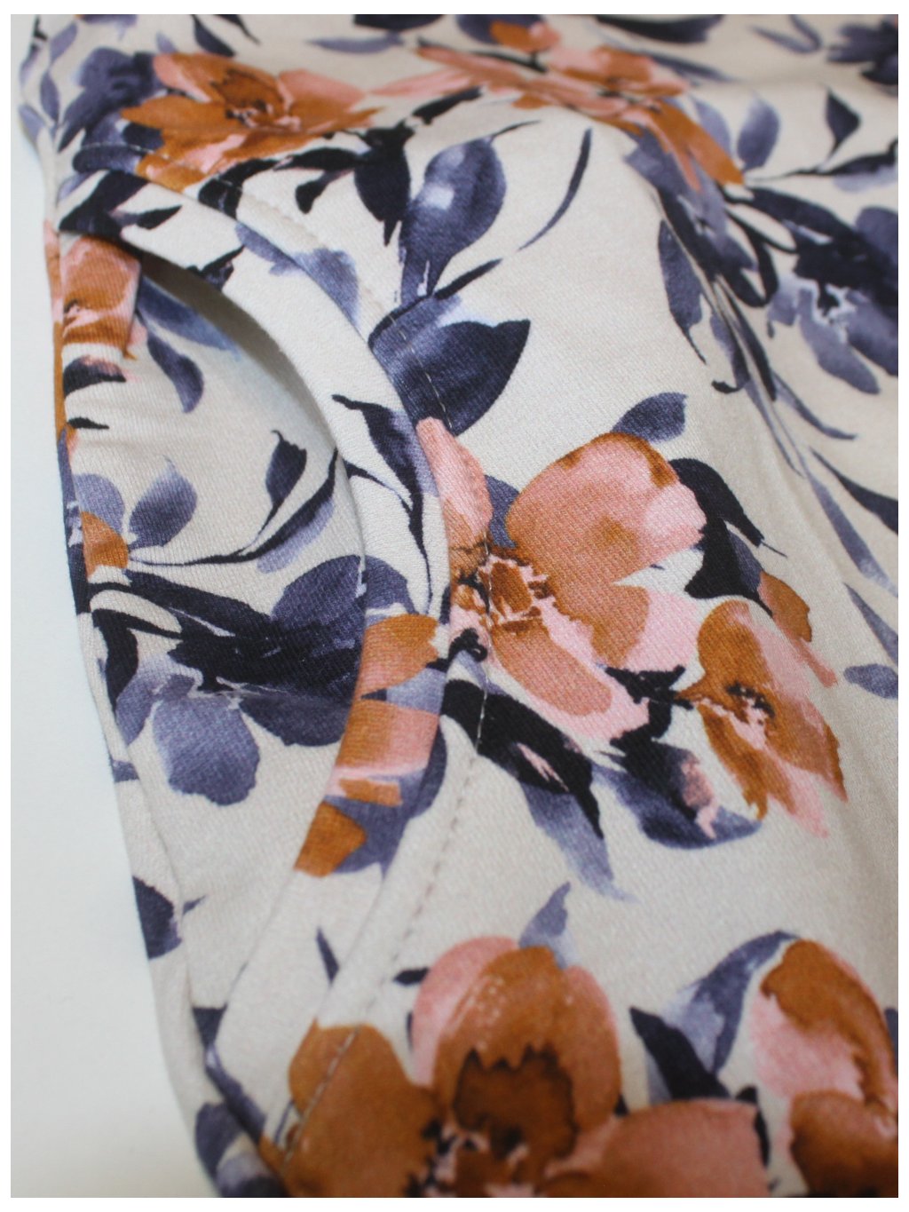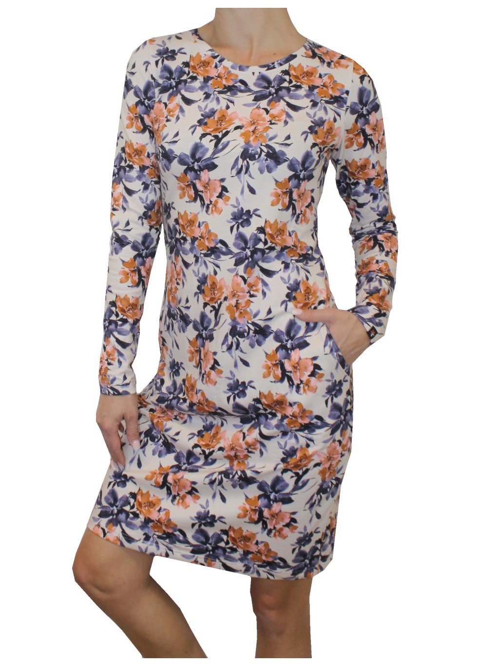 Hřejivé šaty AUDREY, kapsy, béžové s lístky