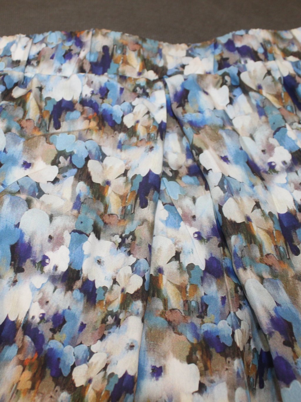 Sukně je lehká, přizpůsobivá, splývavá, materiál je nepružný.