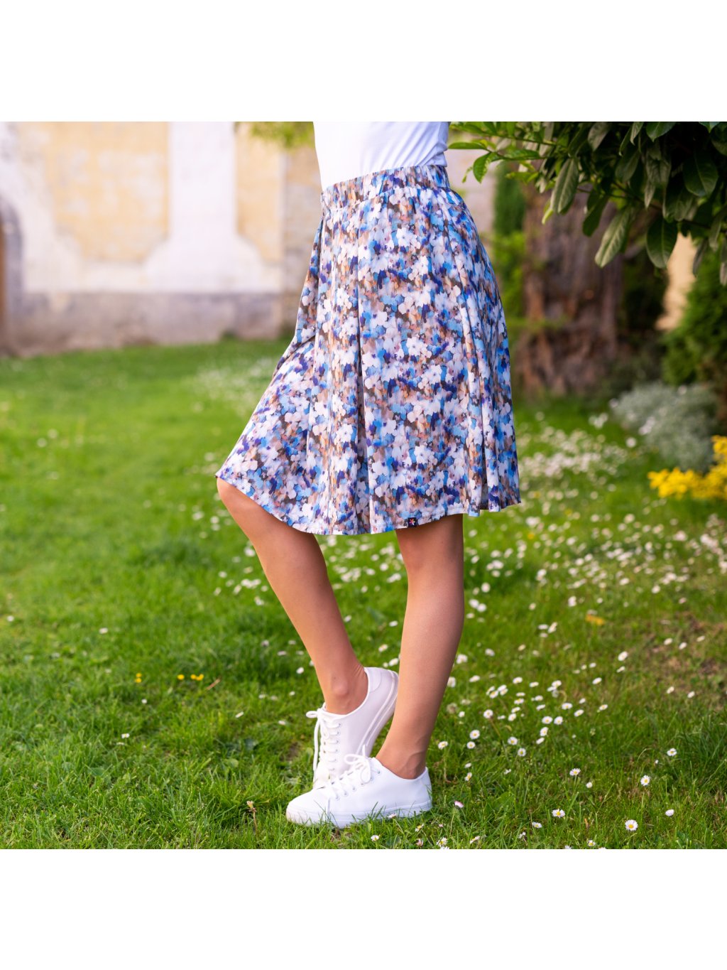 Jemná sukně do pasu LESLIE, drobné modré kvítky