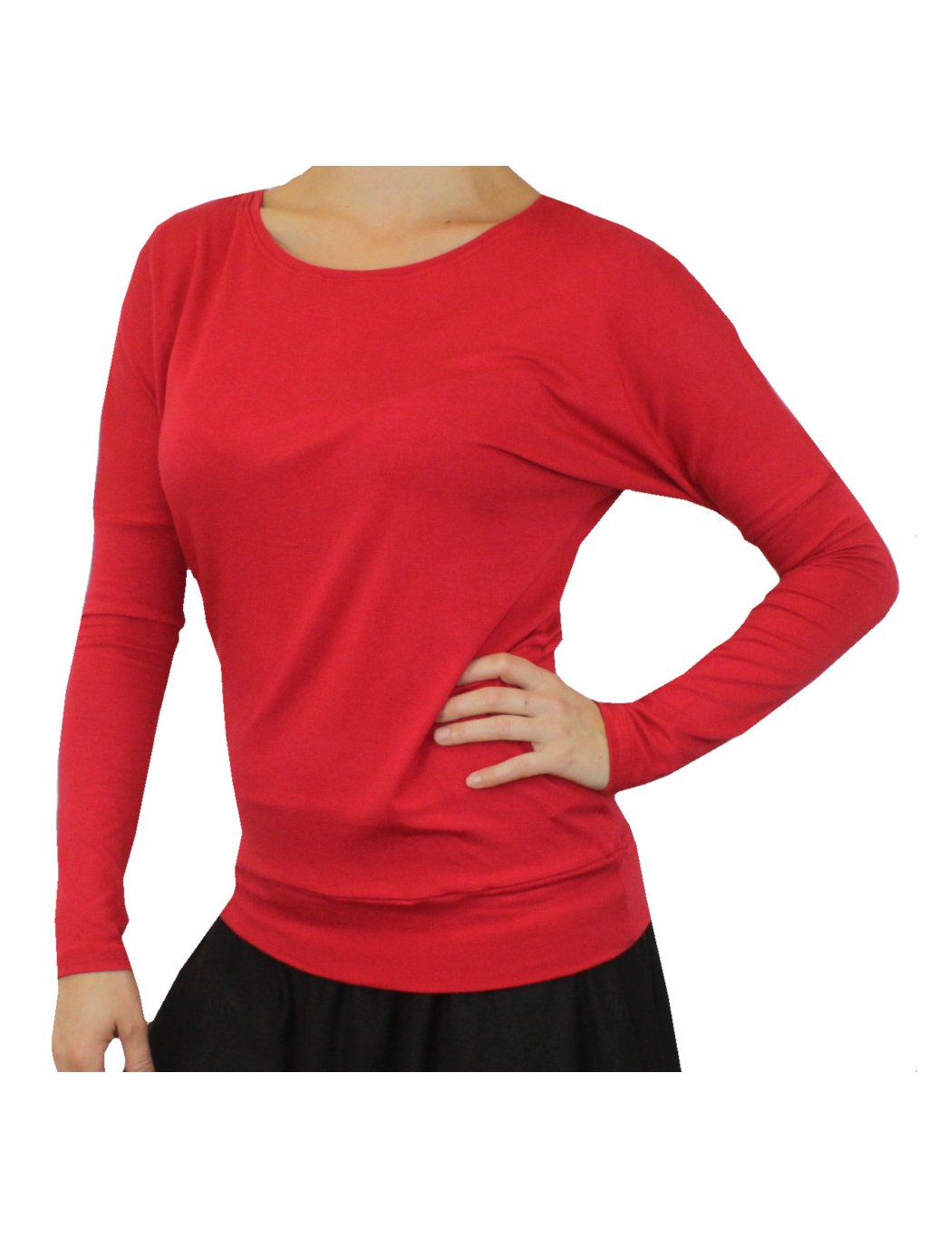 Dámské jednobarevné tričko využijete celoročně. Má přinechané dlouhé netopýří rukávky, volné v podpaží. Tričko je pohodlné, polopřiléhavého střihu.