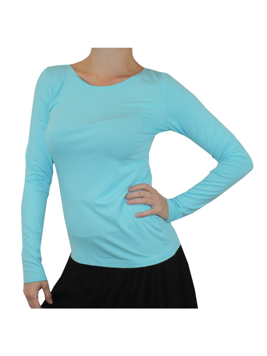 Dámské jednobarevné tričko využijete celoročně. Tričko má dlouhé rukávy a kulatý průkrčník.