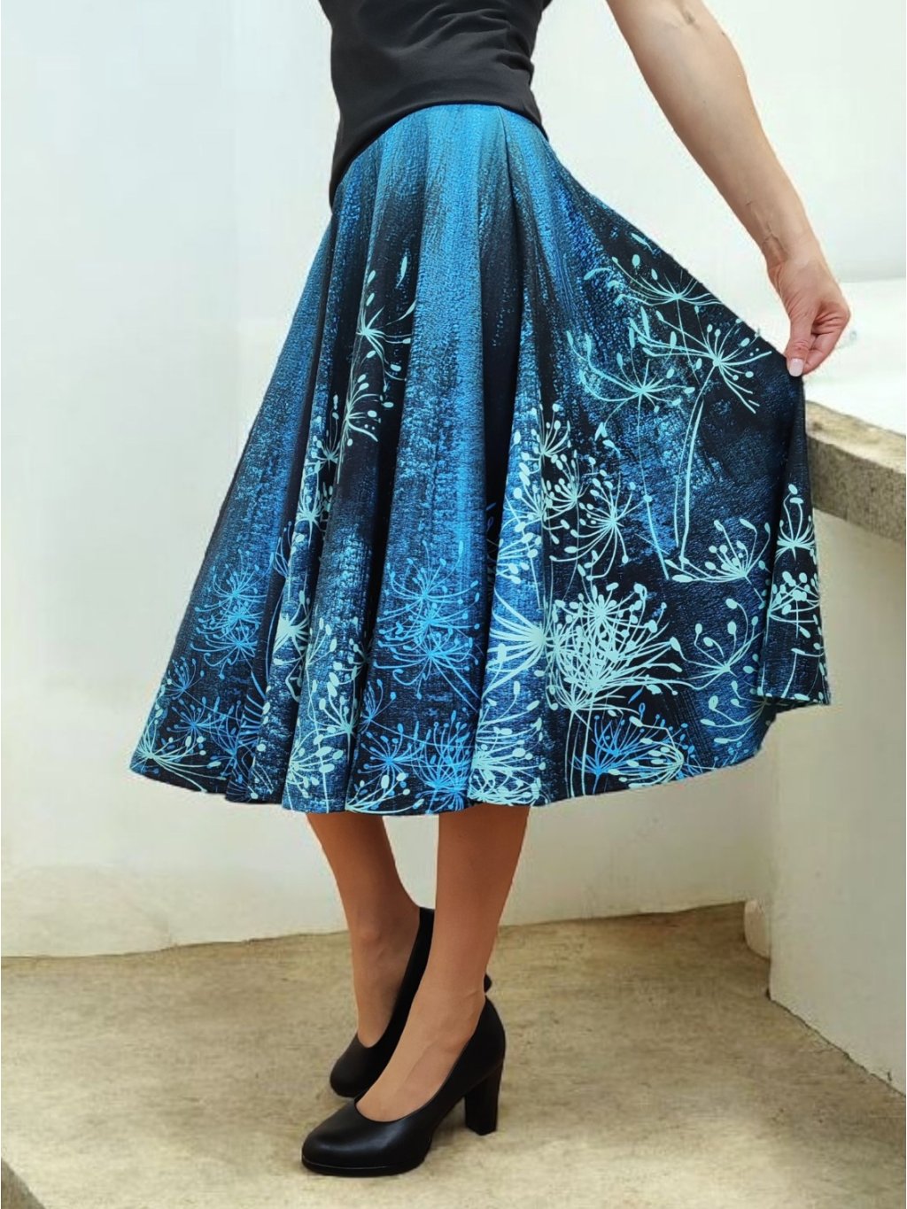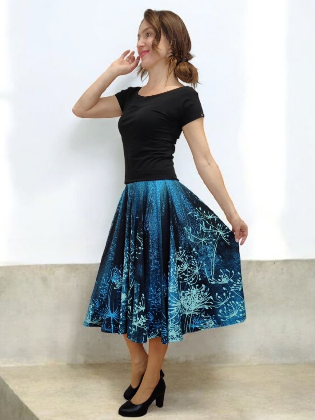 Stylová kolová sukně se hodí pro všechny, které mají rády bohatě točící sukně s pohodlným úpletem v pase.