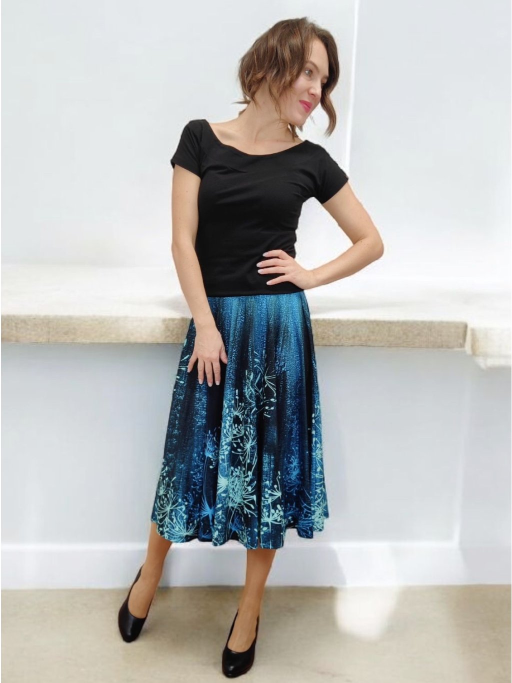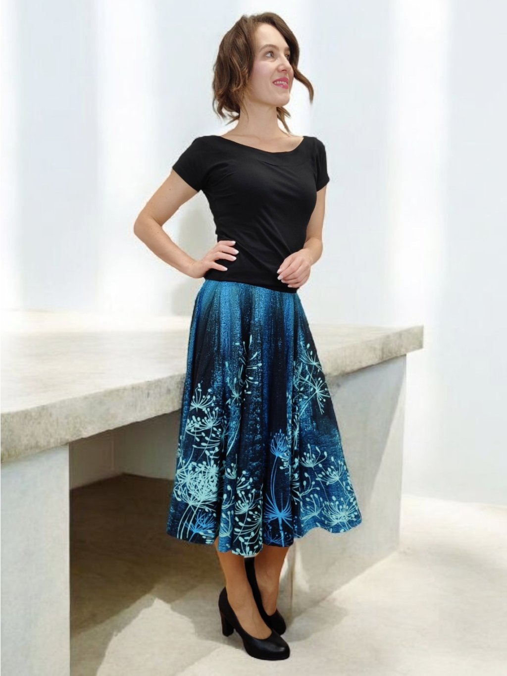 Sukně SERENA je kolová sukně v pase do úpletu. (Oproti sukni SOONA, která je v pase do gumy).