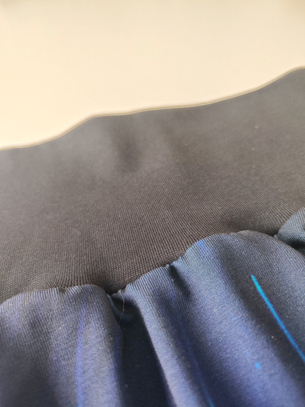 Materiál na sukni je pružný úplet: 92 % polyester/ 8% elastan.