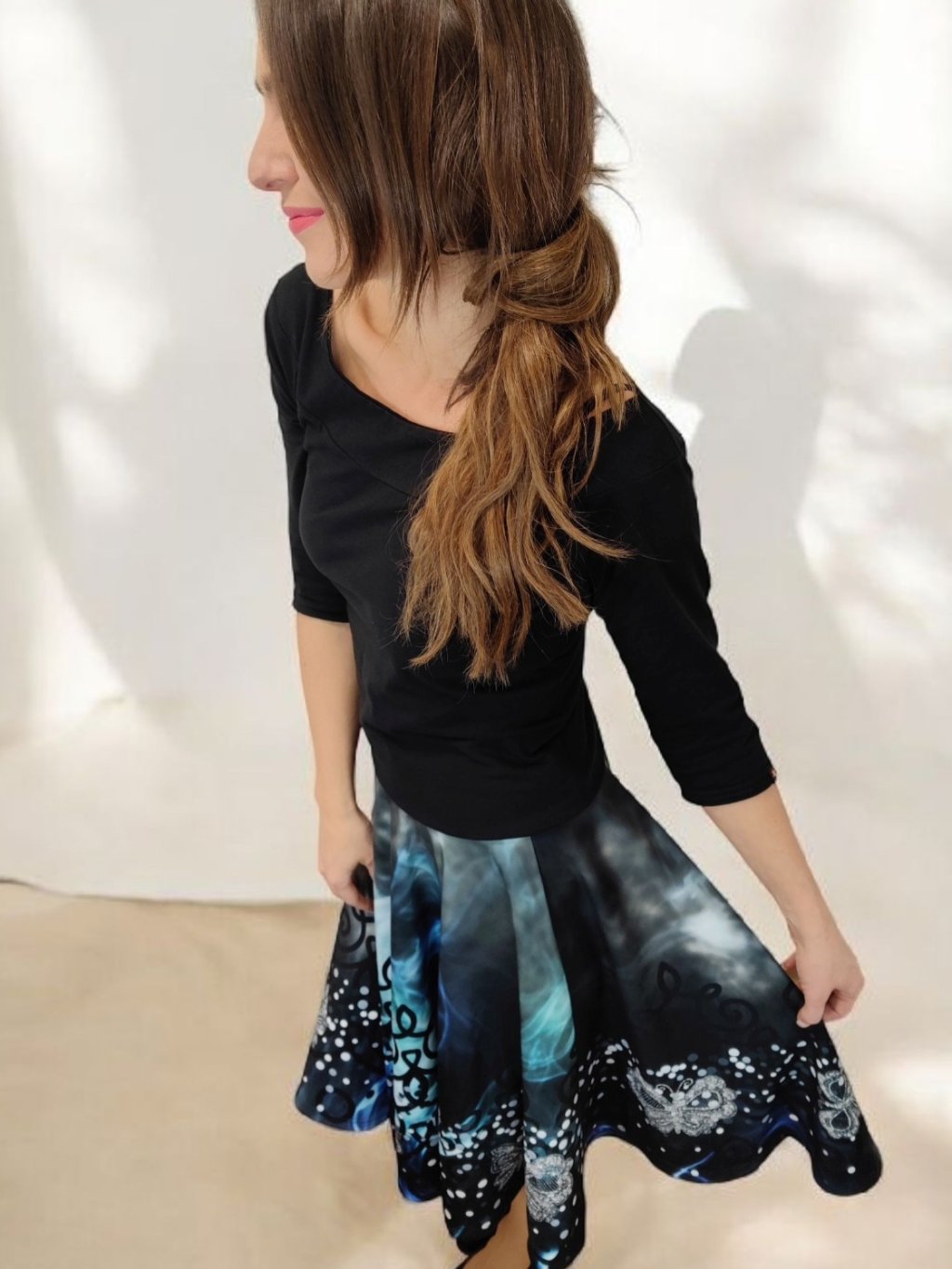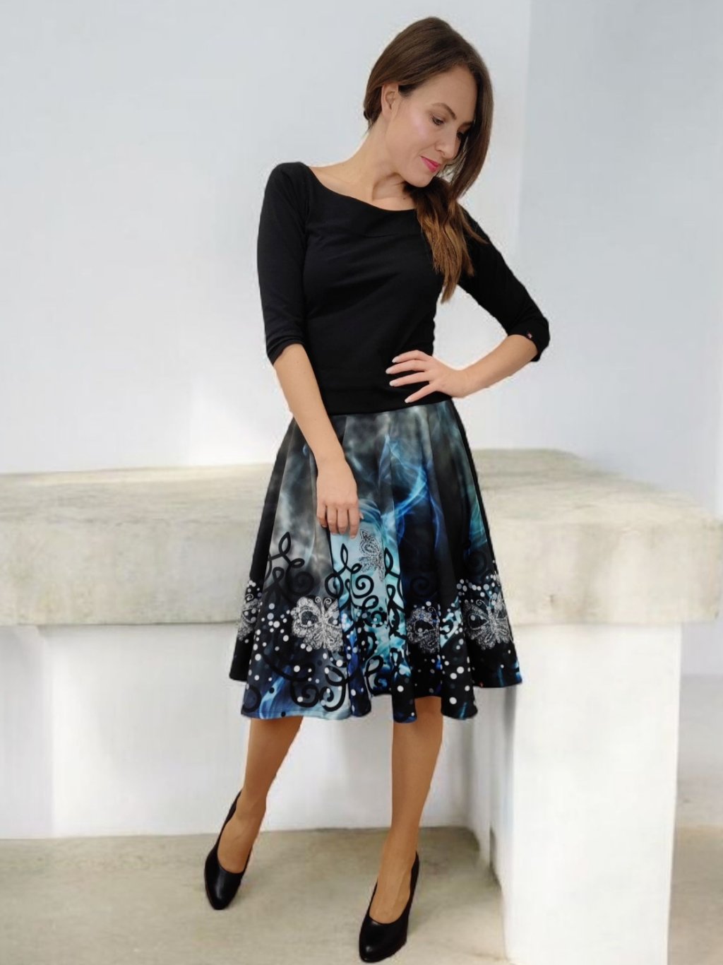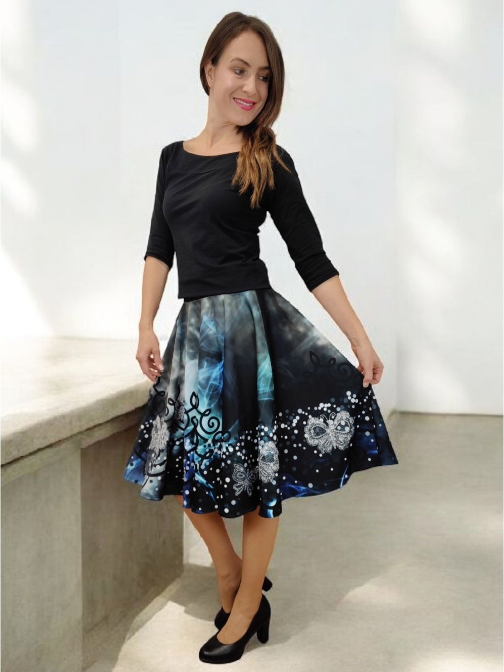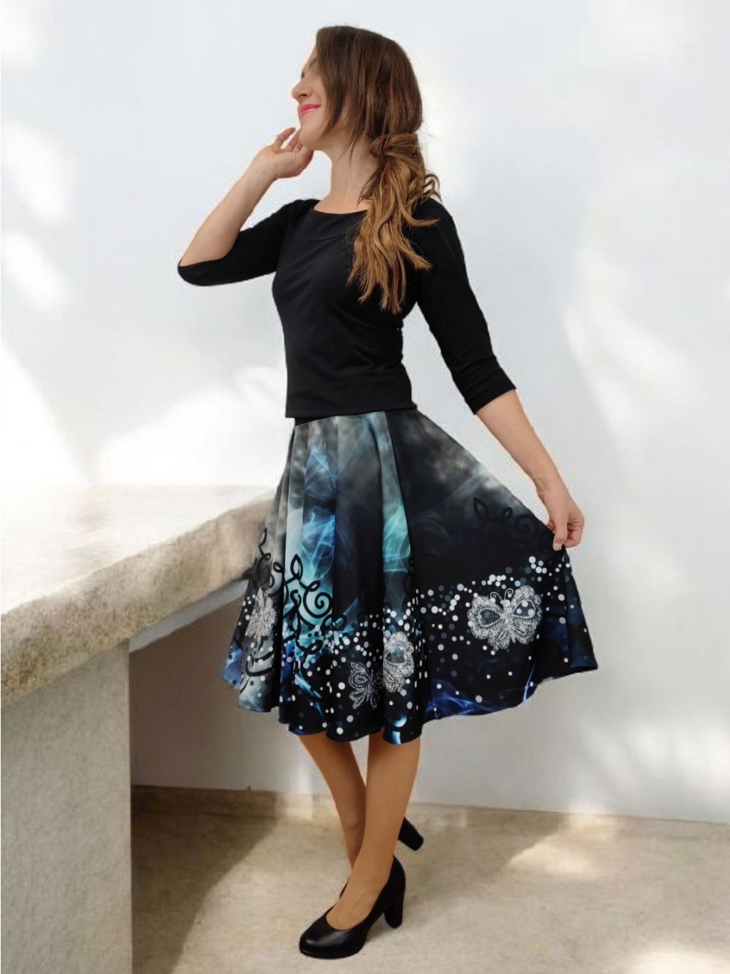 Kolová sukně Serena – Večerní zahrada | Podzimní elegance a točení