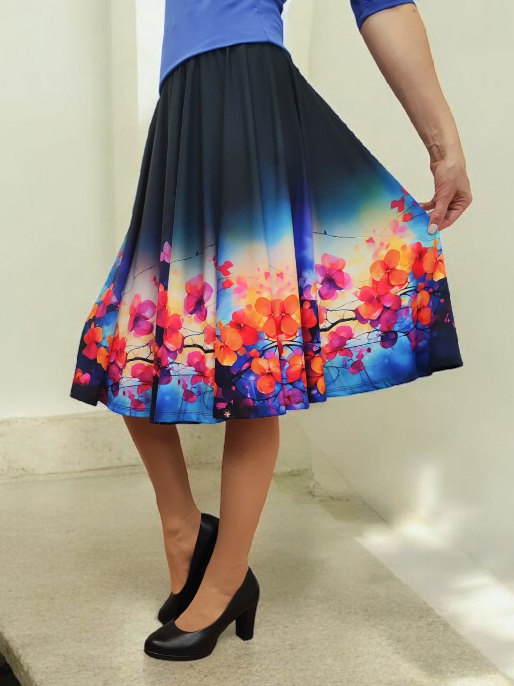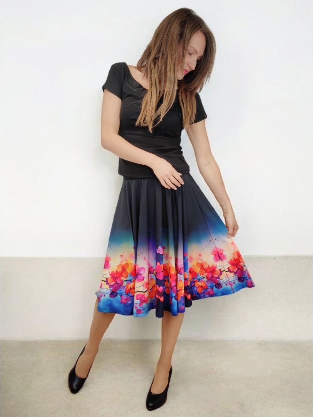 Kolová sukně Serena – Večerní zahrada | Podzimní elegance a točení