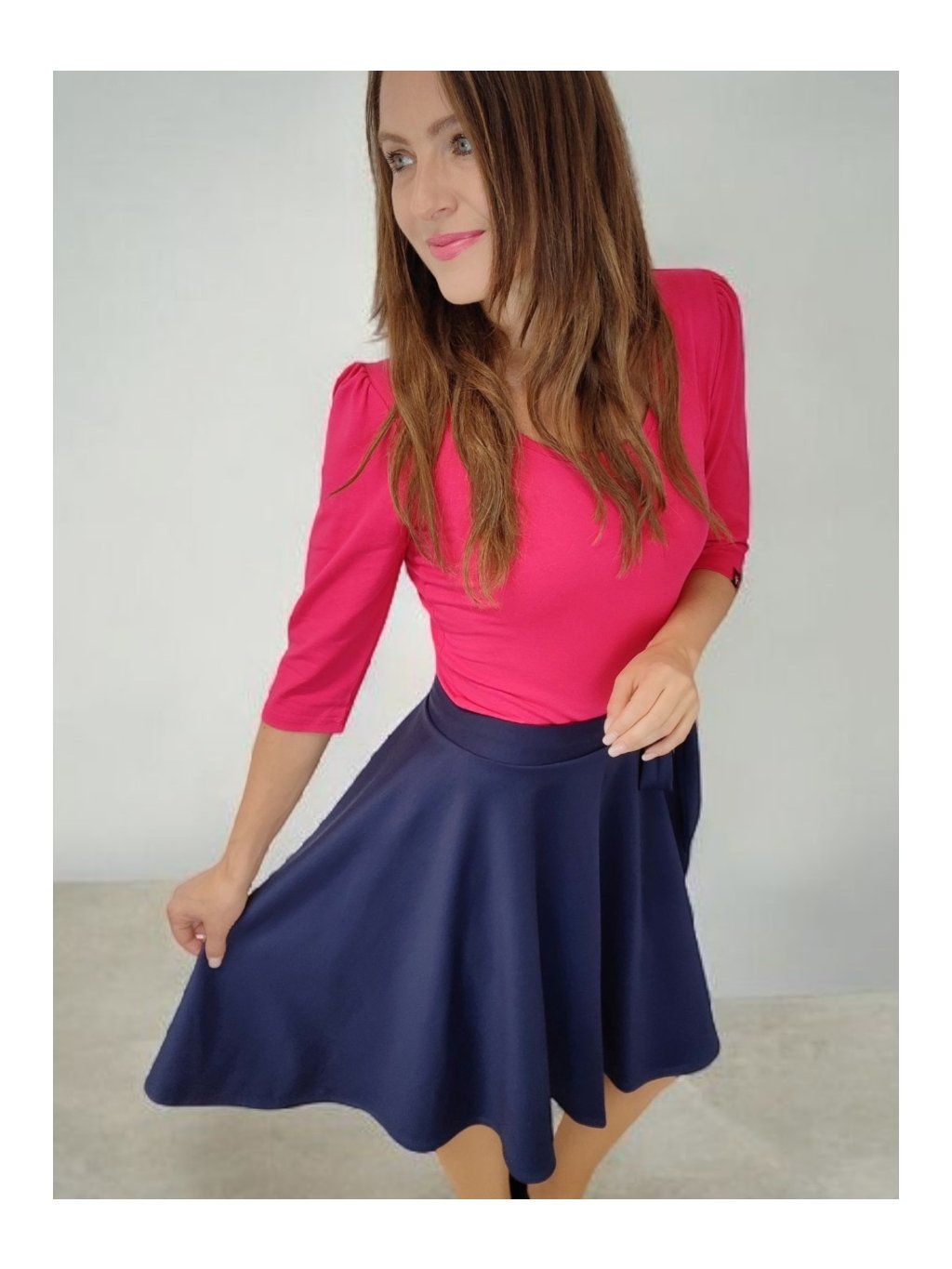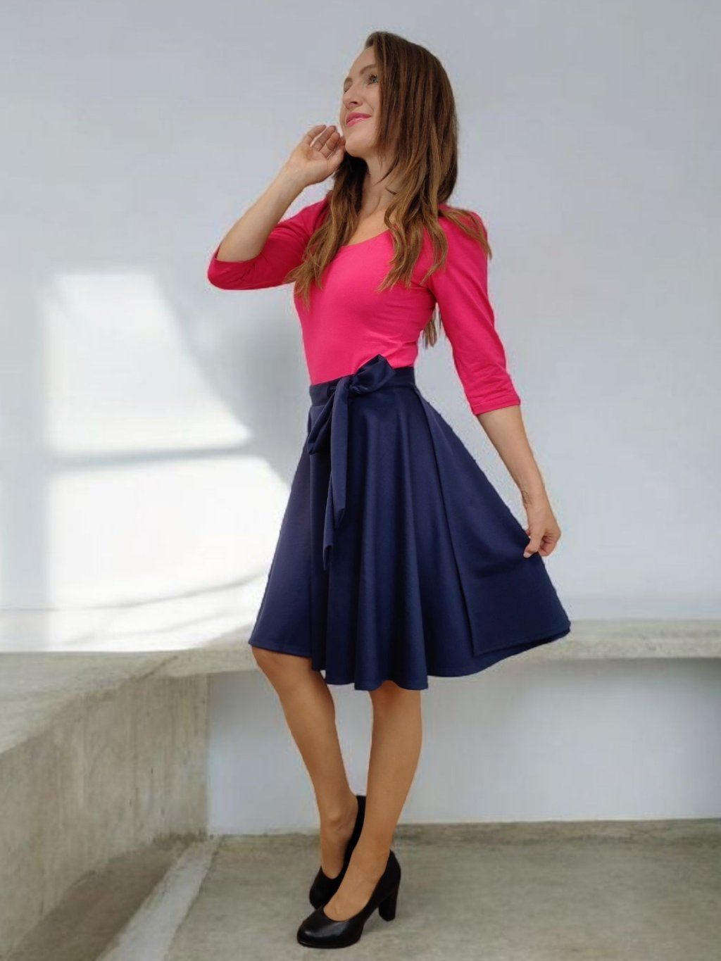 Zavinovací kolová sukně Greta – granátově modrá | Elegantní a univerzální
