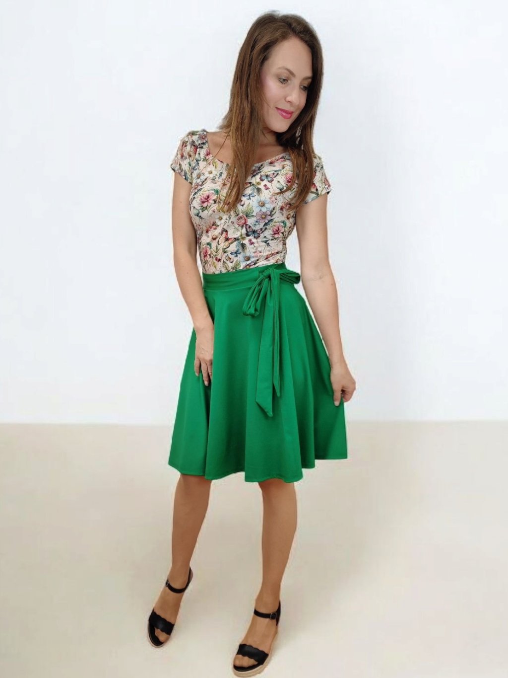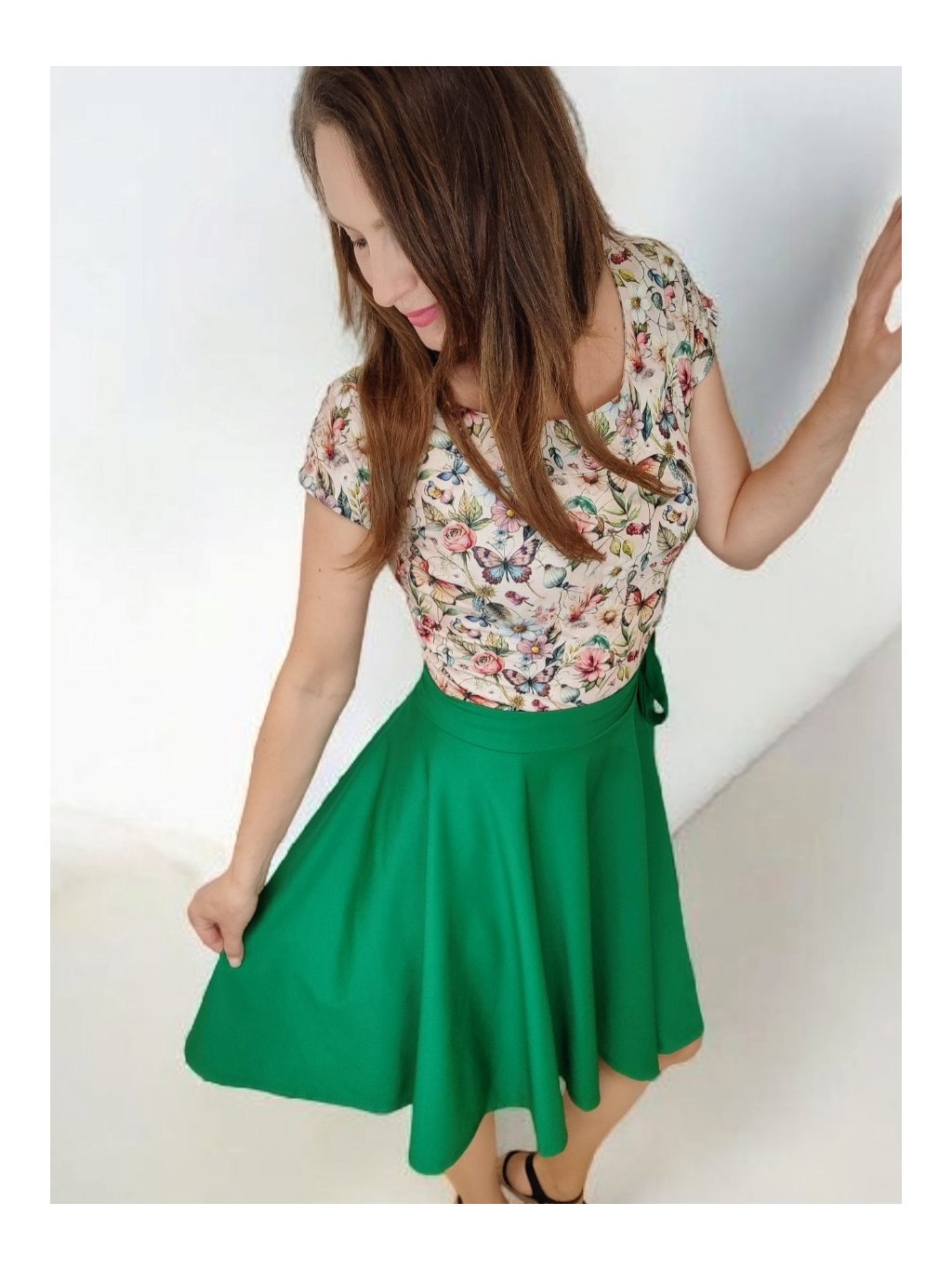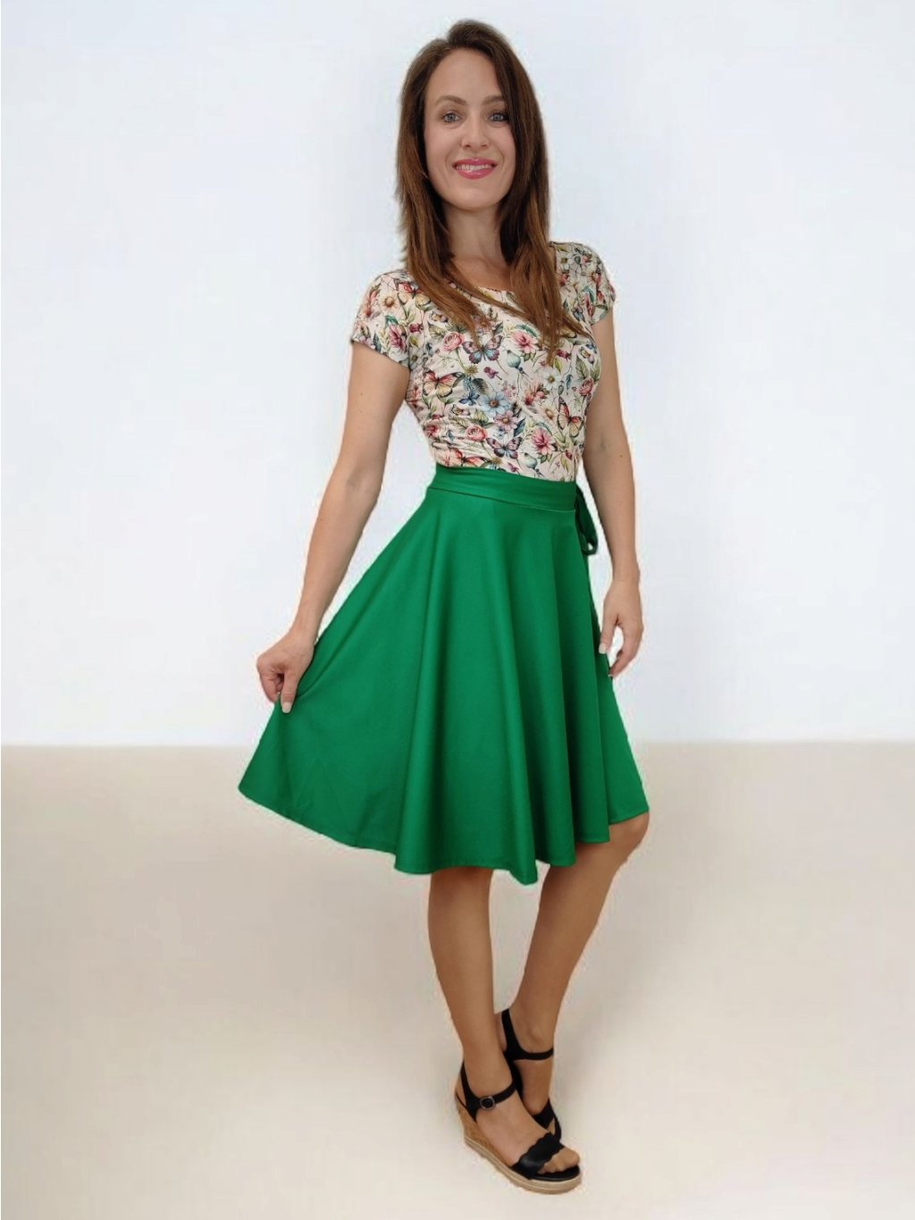 Zavinovací kolová sukně GRETA | Trávově zelená elegance na léto