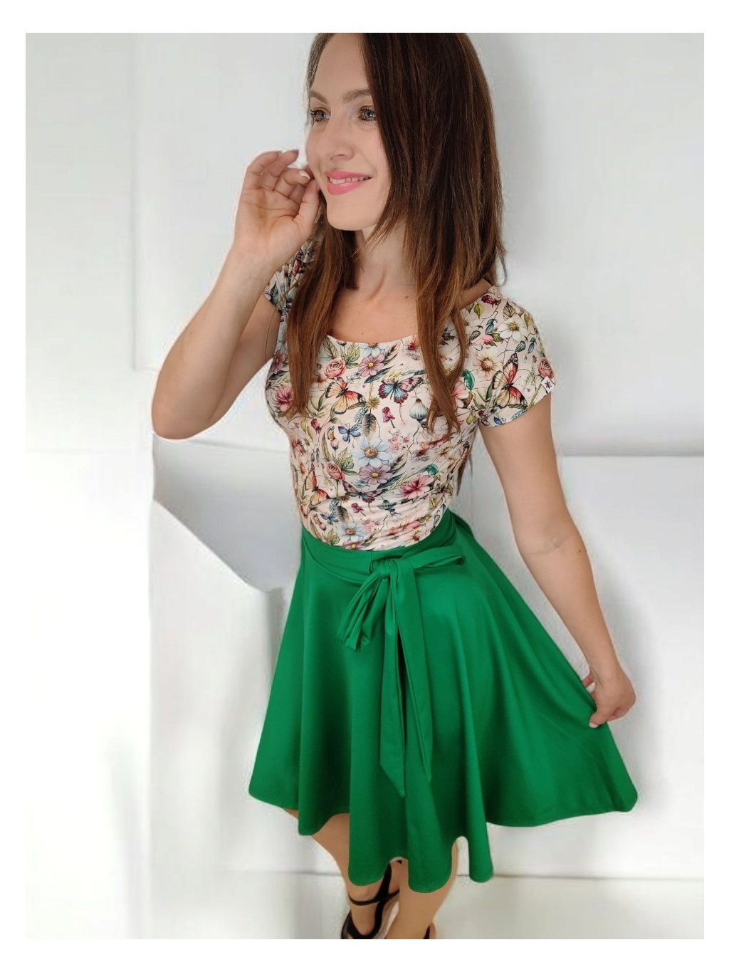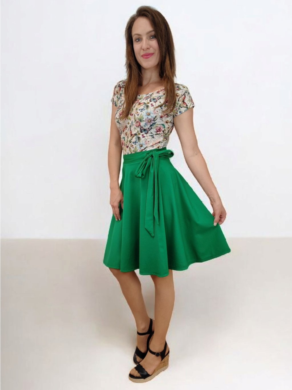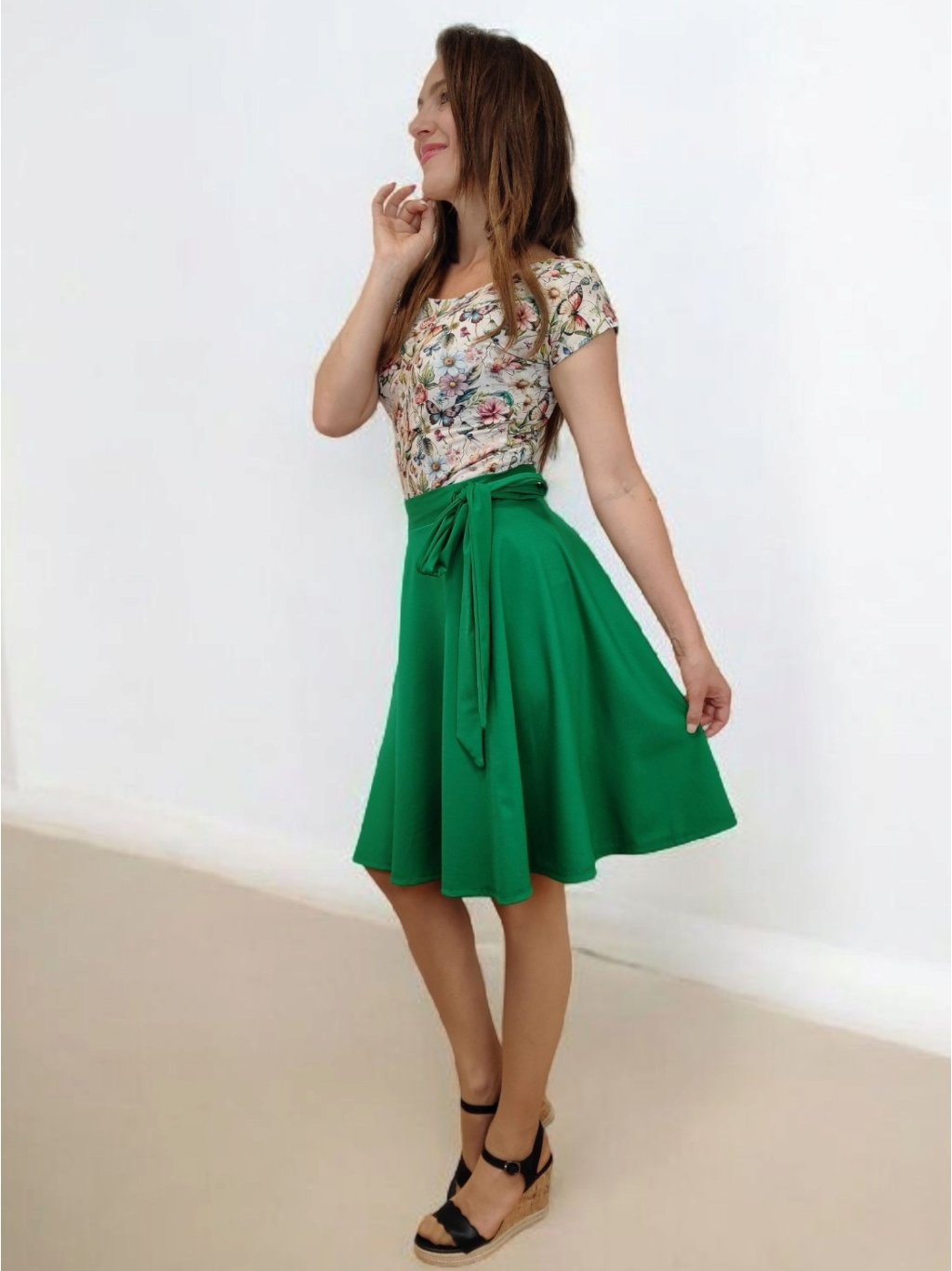 Zavinovací kolová sukně GRETA | Trávově zelená elegance na léto