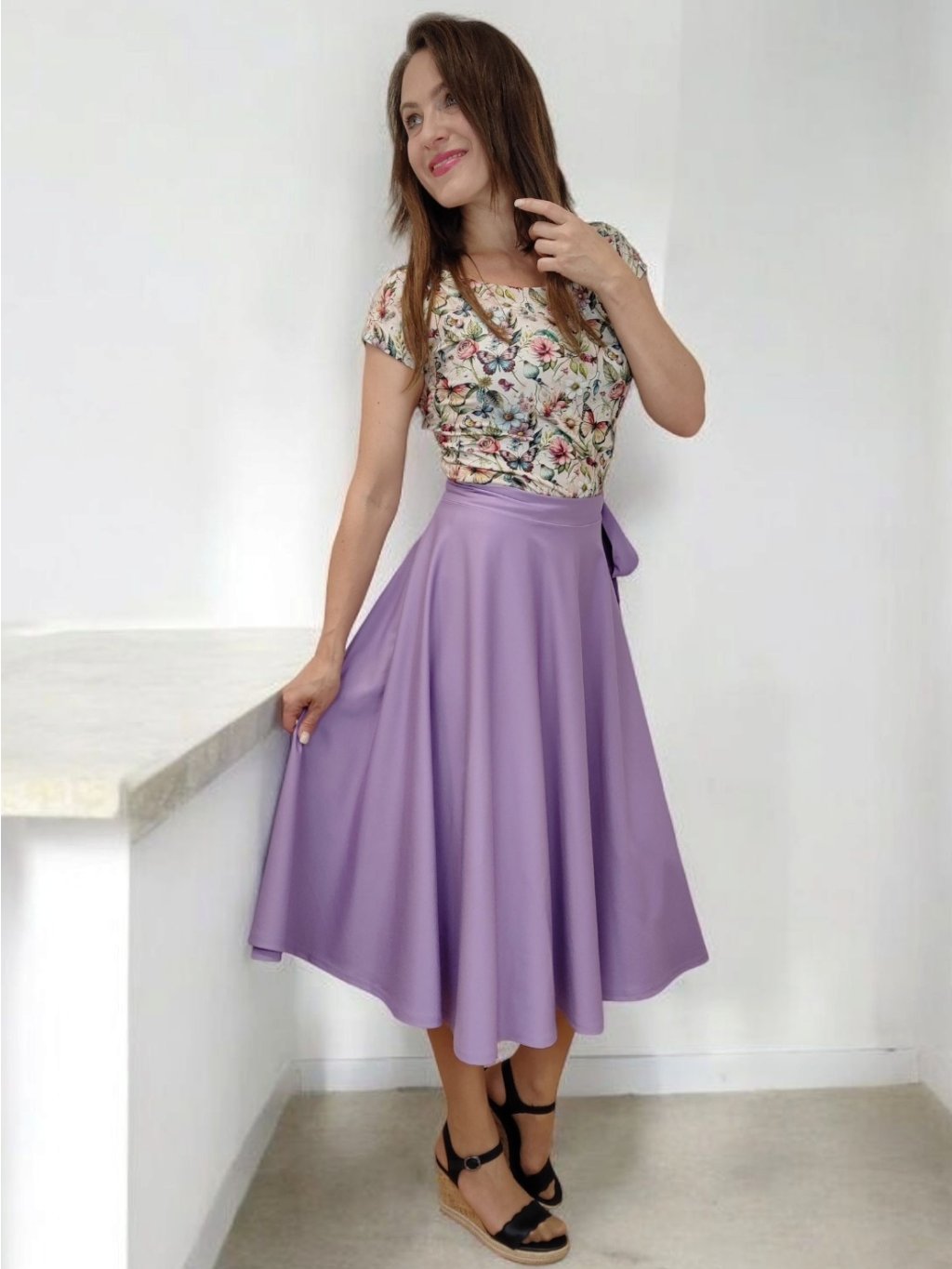 Kolová zavinovací sukně GRETA MIDI, Šeříková