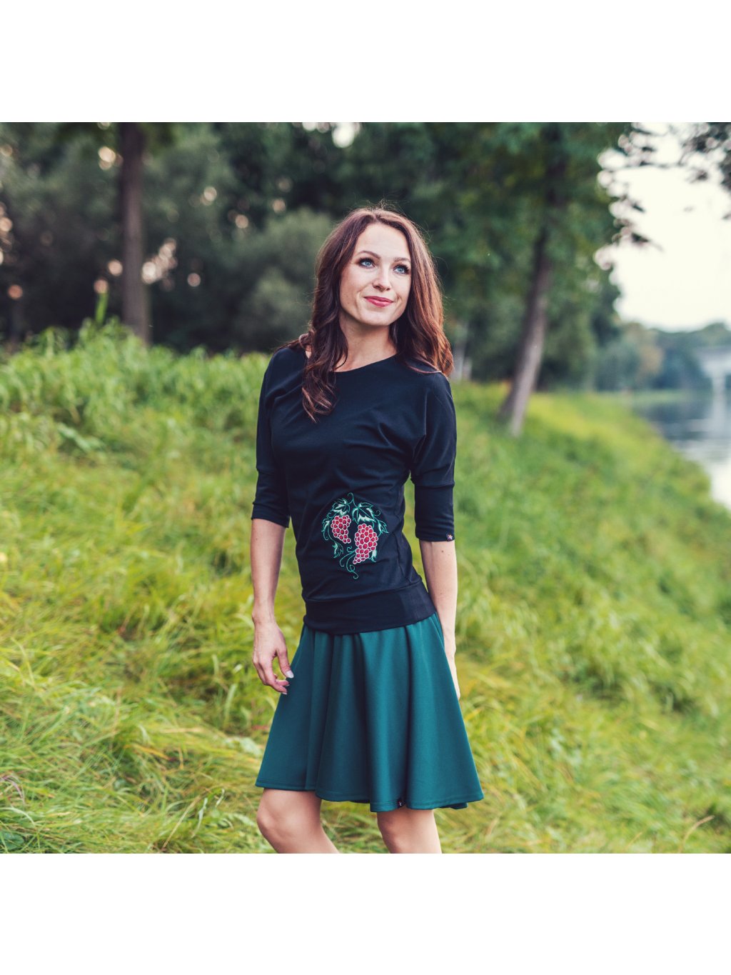 Lahvově zelená kolová sukně ALICE, prodloužený zadní díl