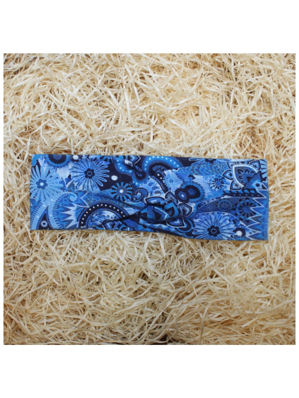 Dětská pružná čelenka z úpletu, v předu má čelenka ozdobné překřížení.