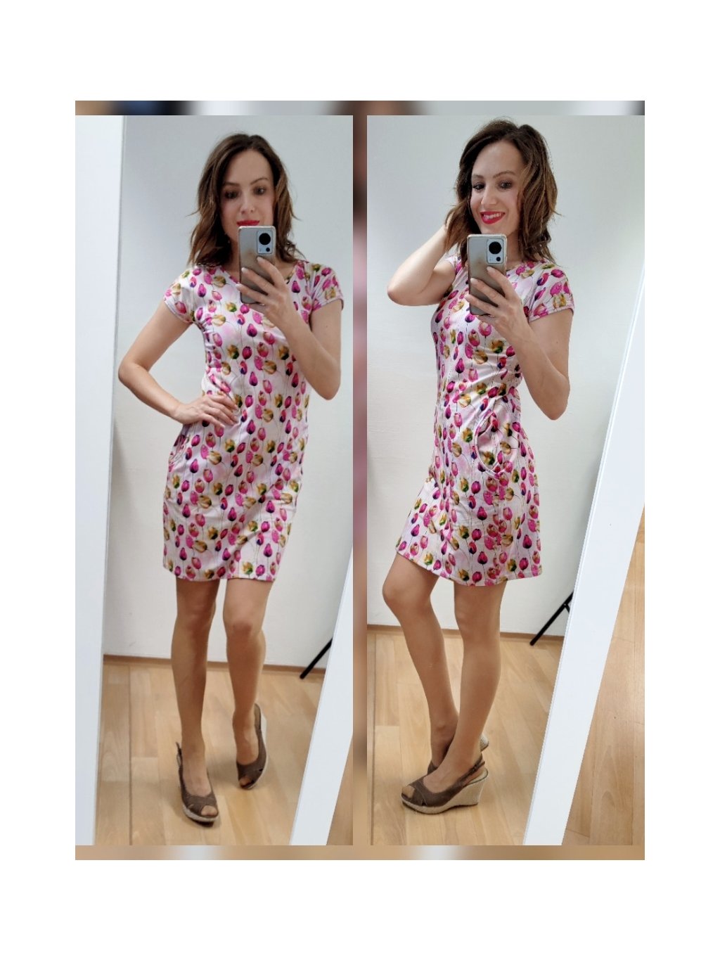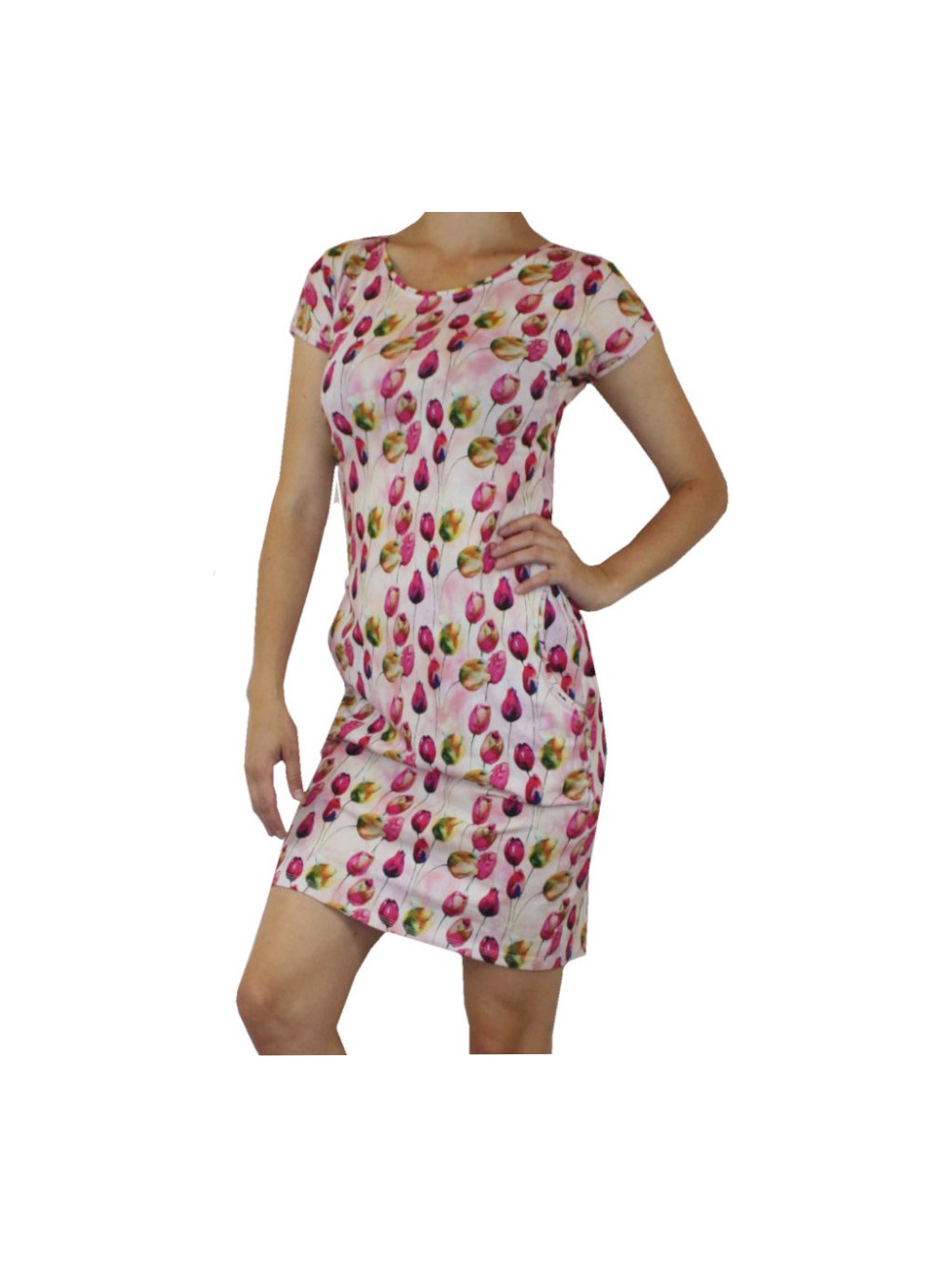 Letní bavlněné dámské šaty, kapsy, tulipány