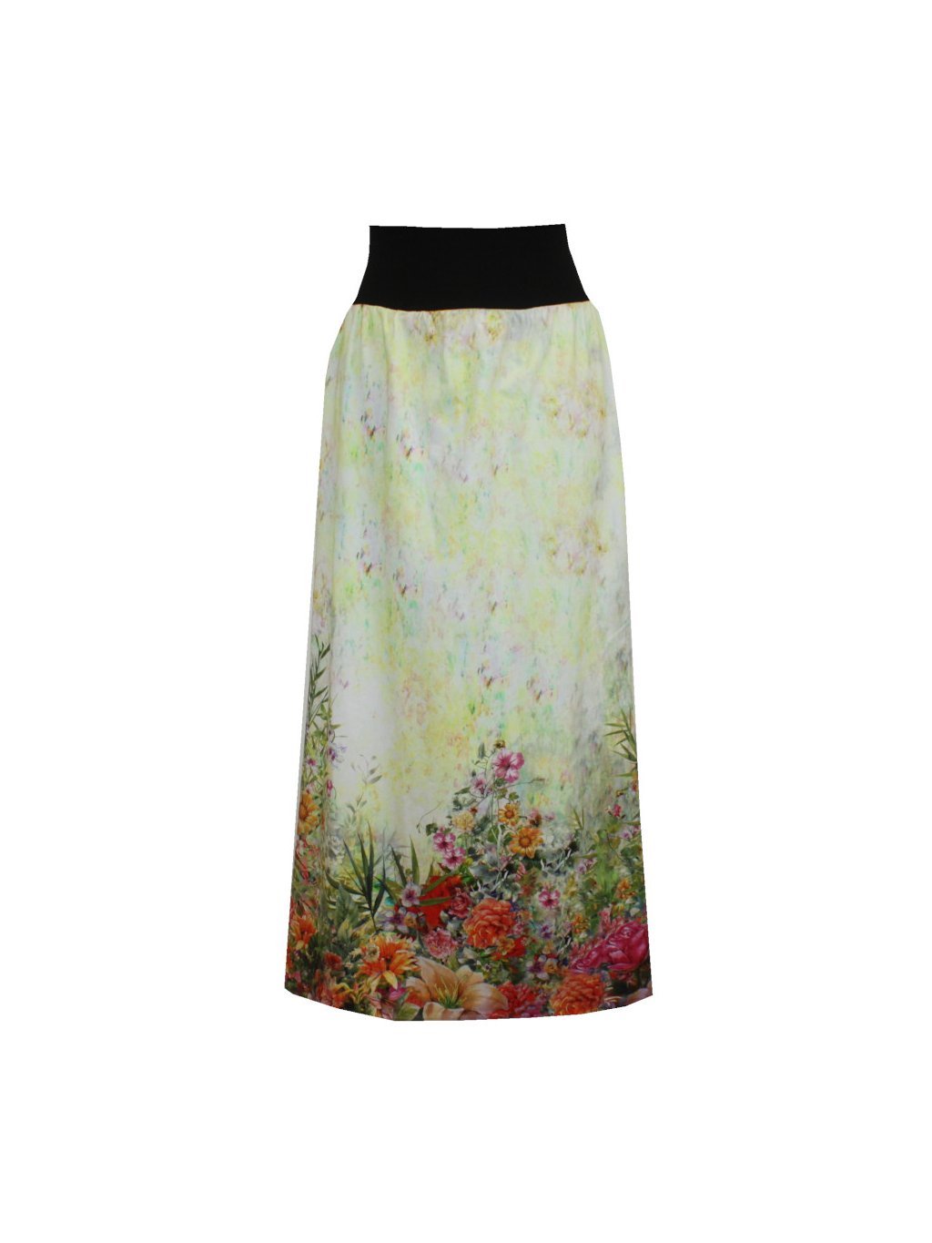 Letní dlouhá bavlněná sukně, hladká s rozparky, rozkvetlá louka