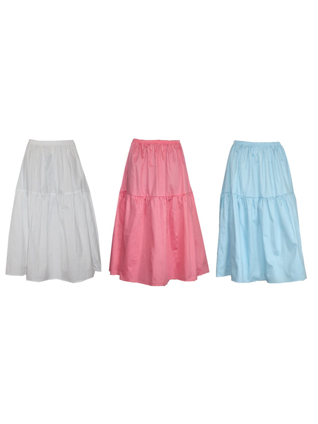 Dlouhá sukně je ušitá z dvou mírně nařasených pruhů bavlněné látky.