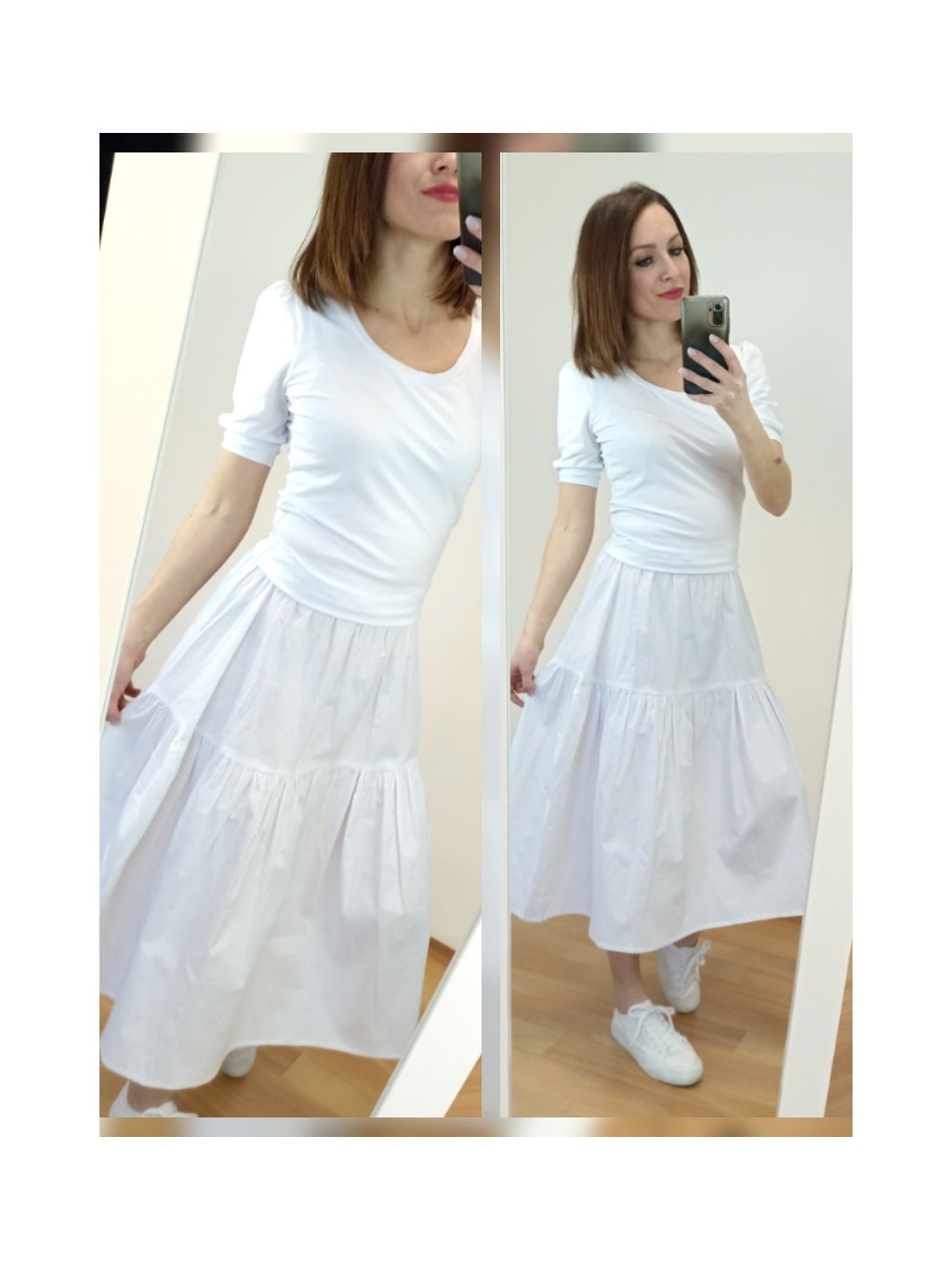 Bílá letní dlouhá sukně volánová z bavlněného plátna