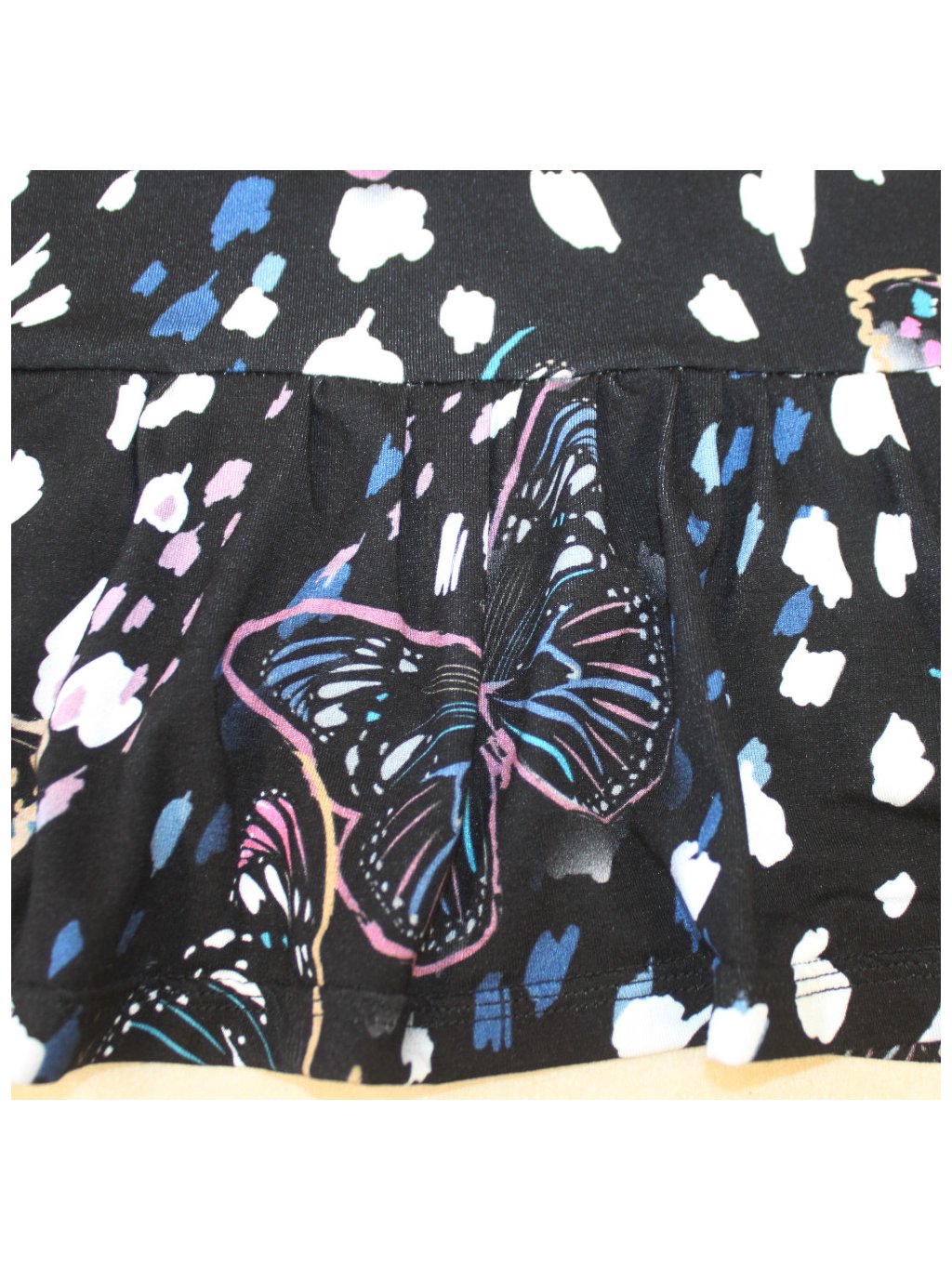 Dámské černé letní šaty s motýlky jsou volnějšího střihu s volánem.