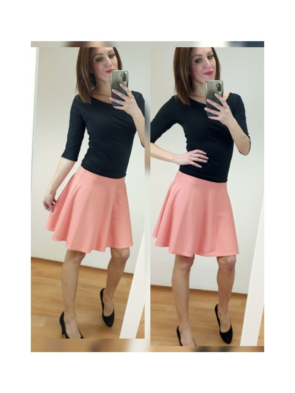 Meruňková dámská půlkolová sukně se hodí od jara do podzimu.