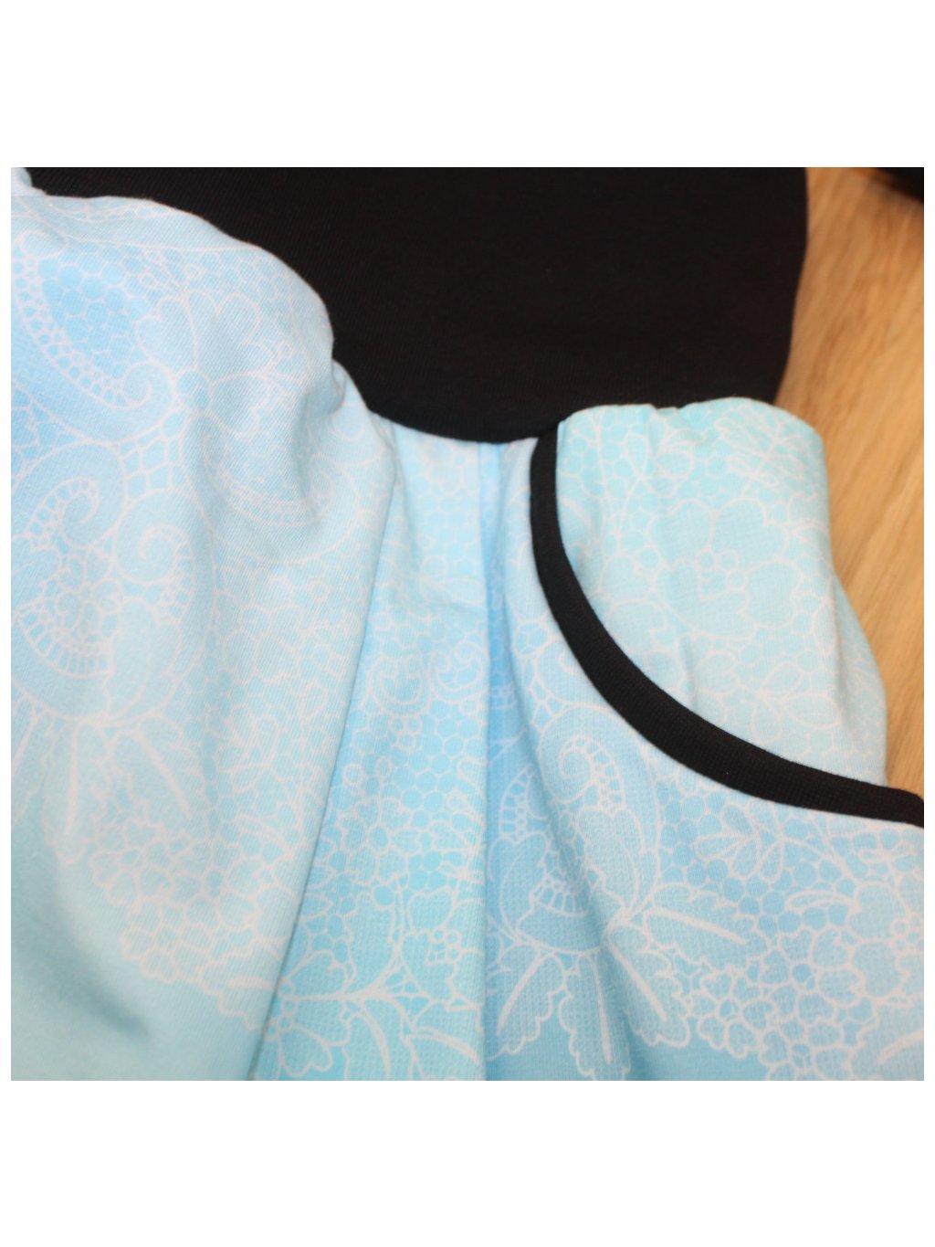 Sukně je ušitá z více druhů materiálů. Vrchní materiál je pružný bavlněný úplet, 95% bavlna / 5% elastan. Digitální tisk. Látka na tuto sukni je středně silný úplet. Spodnička je pružná, jemná, polyester. Pas je z velmi pružného úpletu české výroby. 100% bavlna. |