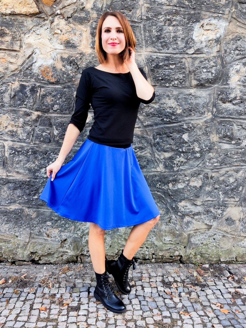Dámská modrá sukně se hodí celoročně. Materiál středně silný.