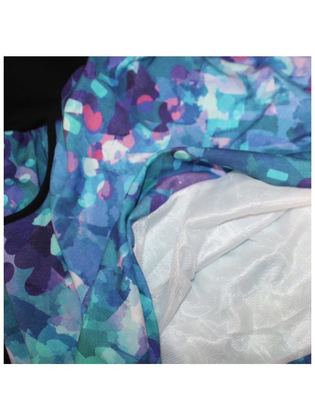 Vrchní materiál je pružný bavlněný úplet, česká výroba 95% bavlna / 5% elastan. Digitální tisk.