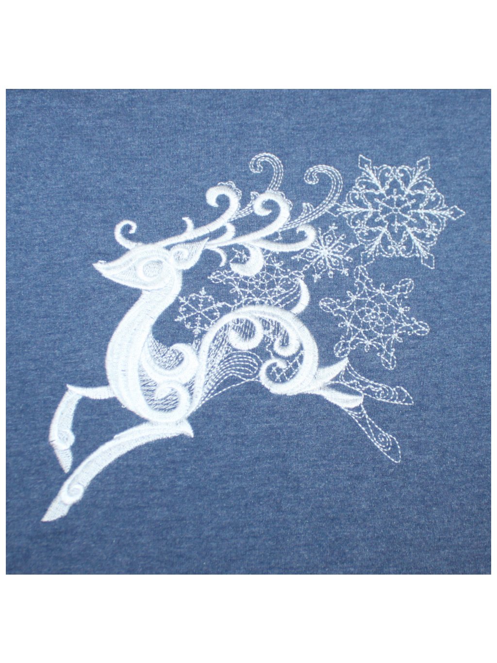 Modré dlouhé šaty z mikinoviny, dlouhé rukávy, volnější střih, jelínek a vločky
