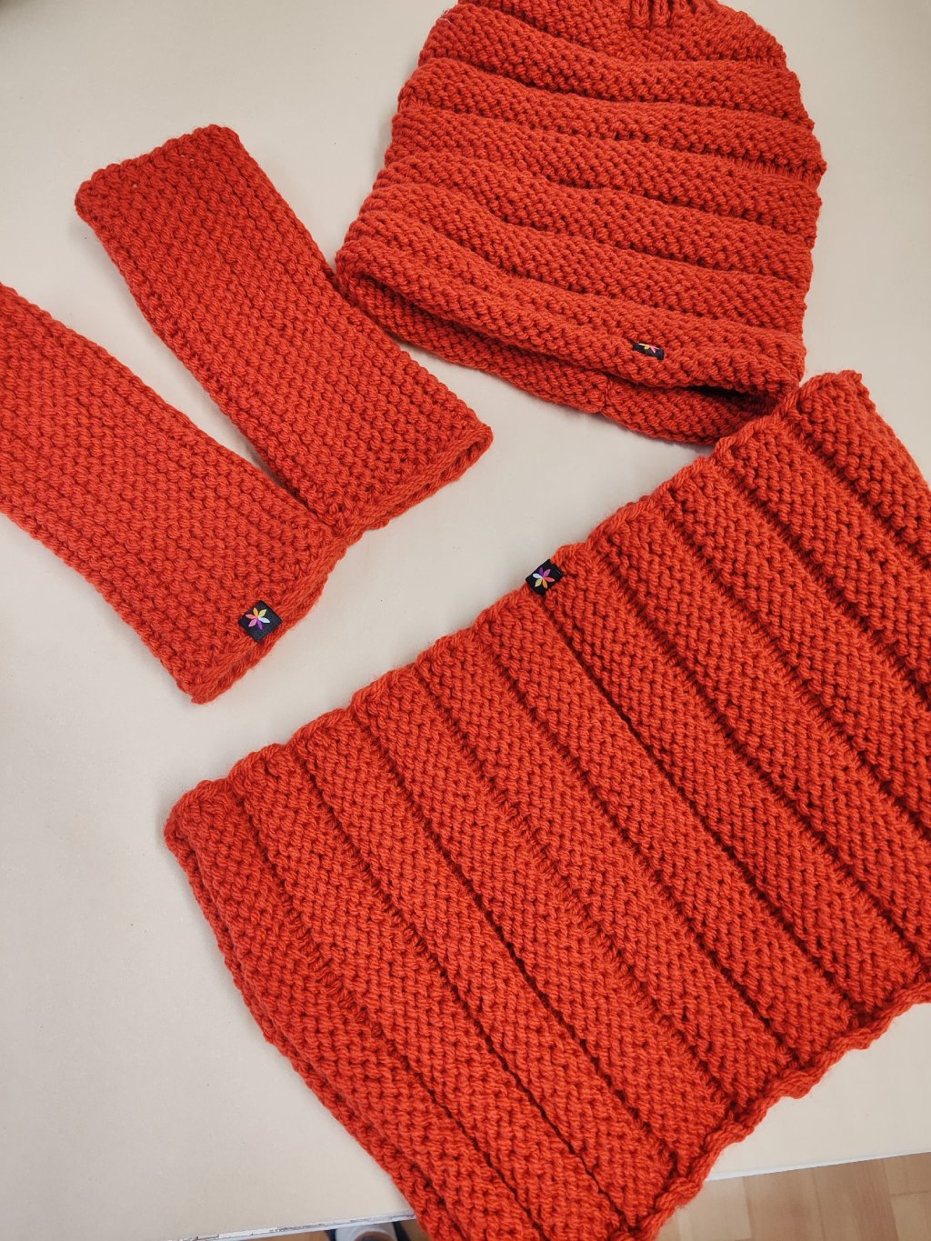 K návlekům na ruce máme ze stejné vlny pletené i zimní čepice a zimní čelenky.