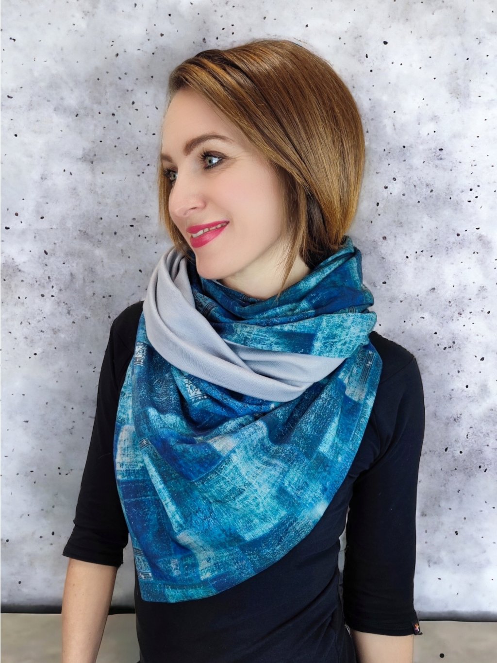 Oboustranná šála na knoflík, modrá se vzory/šedá