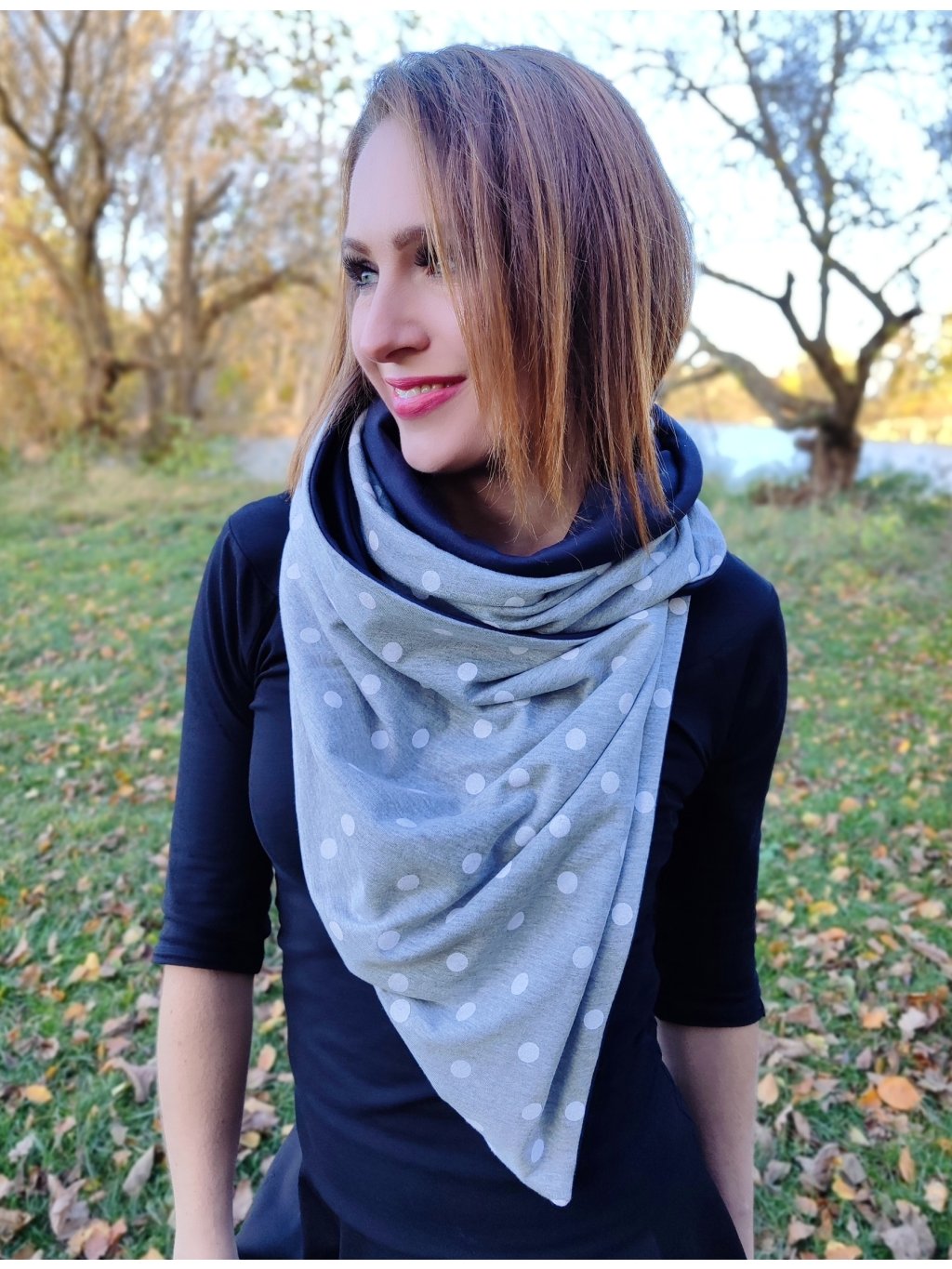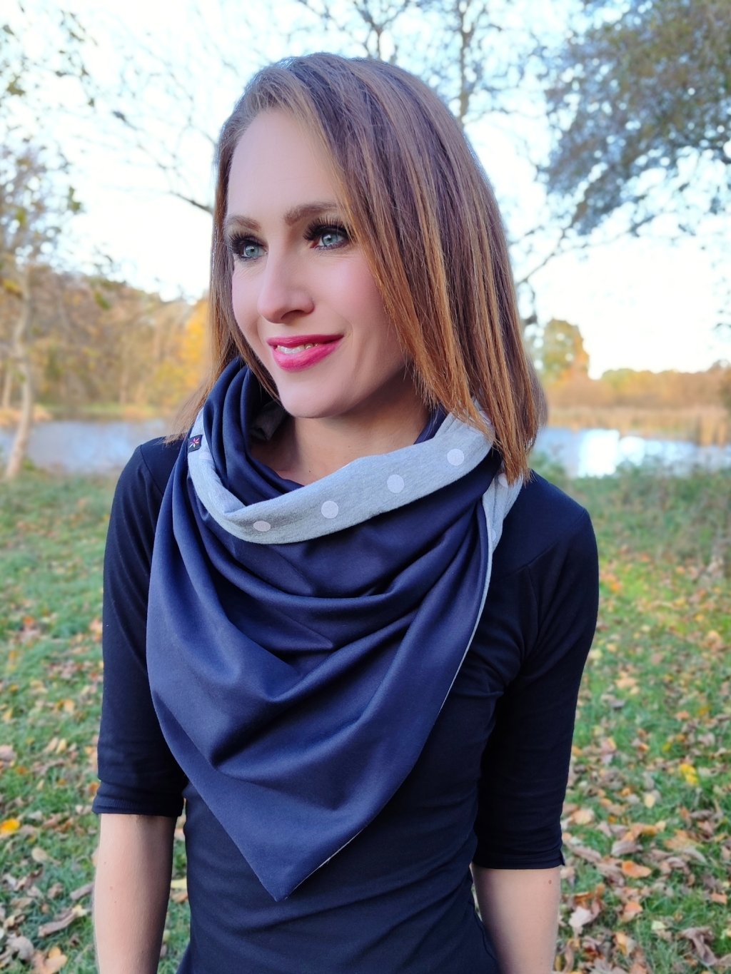 Oboustranná šála na knoflík se hodí od podzimu do jara.