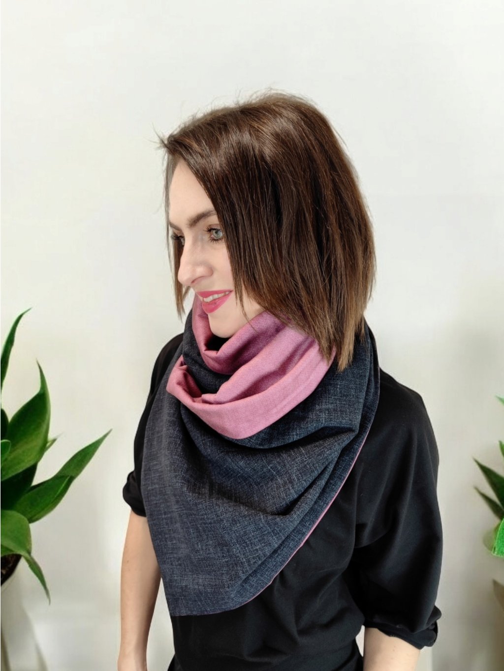 Oboustranná šála na knoflík, starorůžová/tmavě šedá