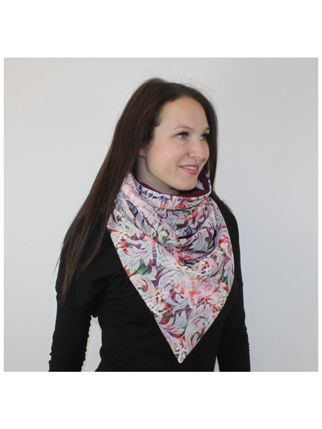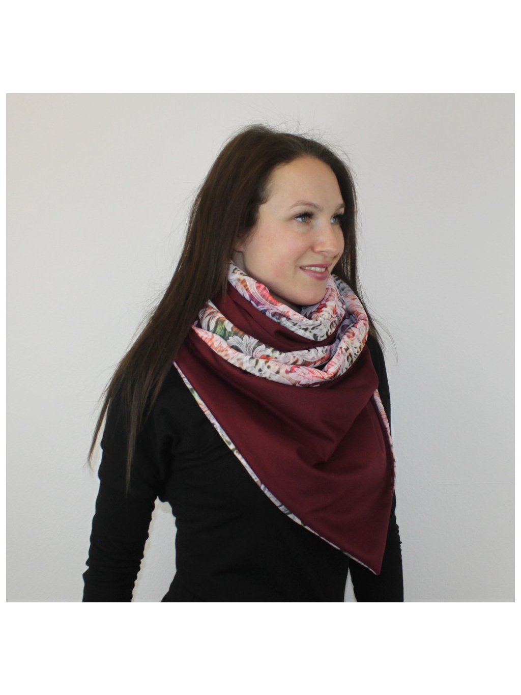 Oboustranná šála na knoflík, vzorovaná/ vínová