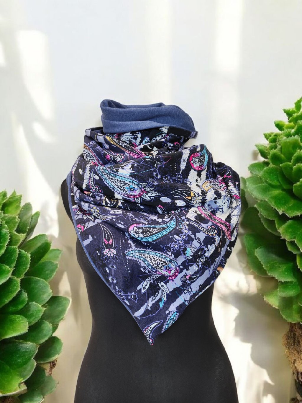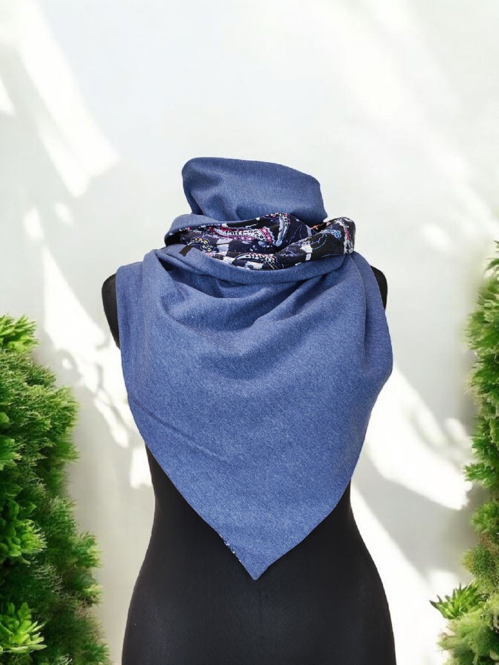 Oboustranná šála na knoflíky, Fialovo modrá se vzory/ šedomodrá