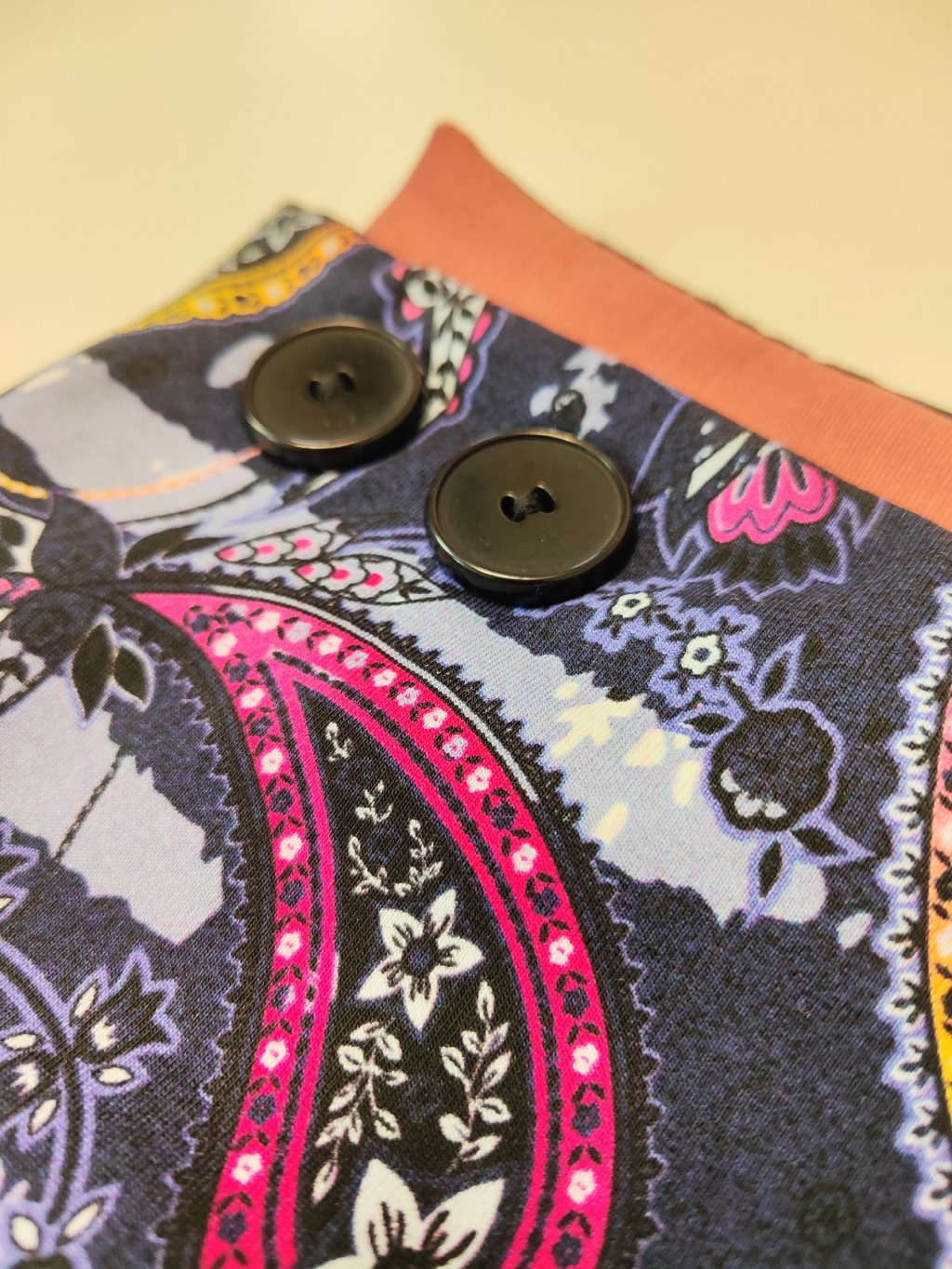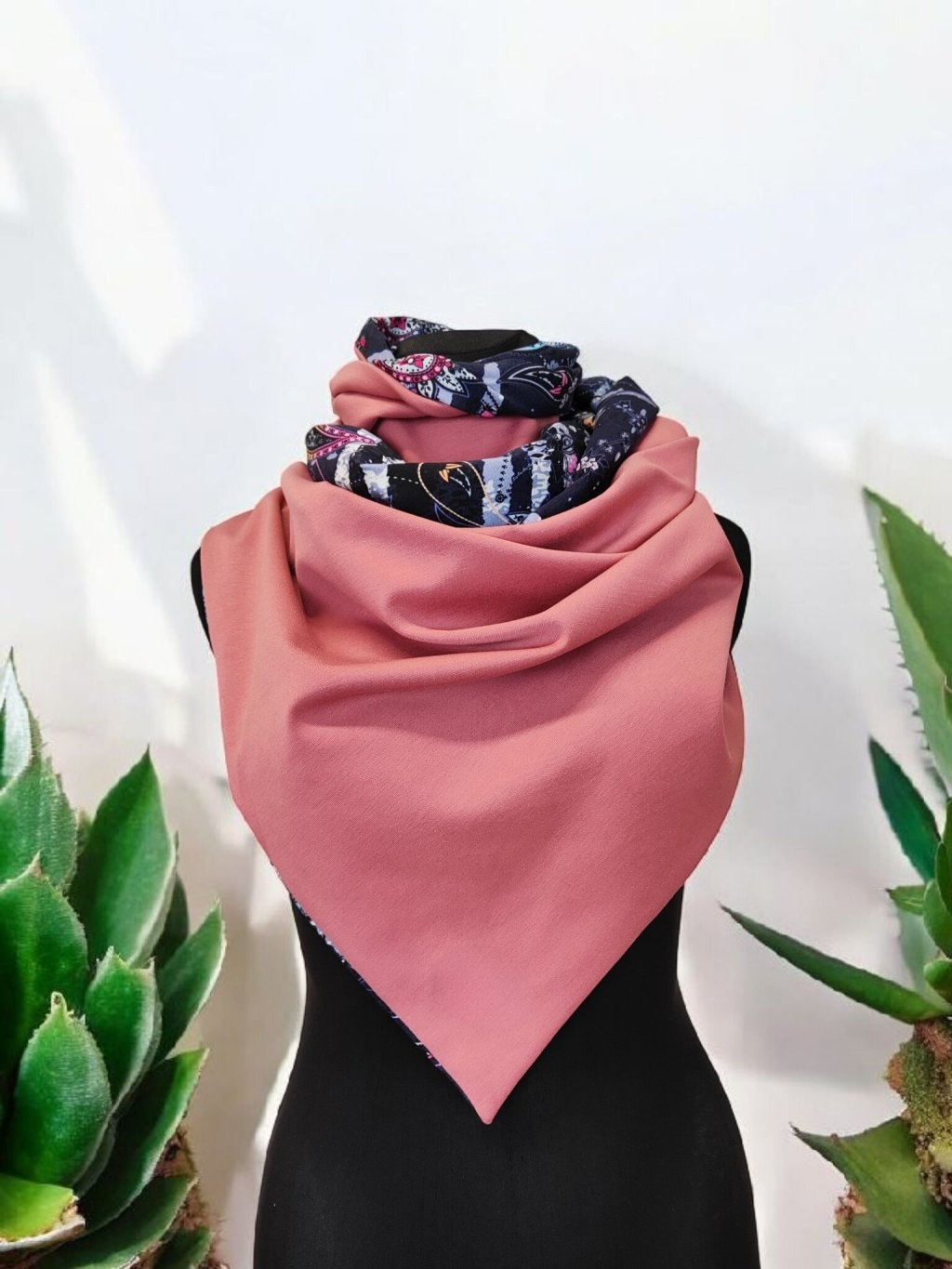 Naše dlouhá oboustranná šála na knoflíky je ideální společník od podzimu do jara. Jednoduše se zapíná na knoflíky, takže ji nemusíte složitě vázat – drží krásně sama a působí vždy upraveně. Díky oboustrannému provedení si můžete zvolit, která strana bude právě vidět – vzorovaná nebo jednobarevná. Materiál s příměsí elastanu je měkký, příjemný na dotek a dobře drží tvar. Šálu lze nosit přes kabát, svetr nebo šaty – zahřeje a dodá outfitu originalitu. Skvěle ladí s jednoduchými šaty nebo sukní z naší nabídky.