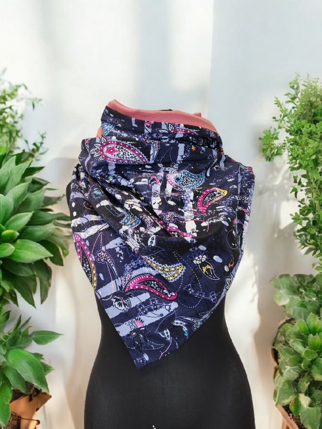 Oboustranná šála na knoflíky, Fialovo modrá se vzory/ starorůžová