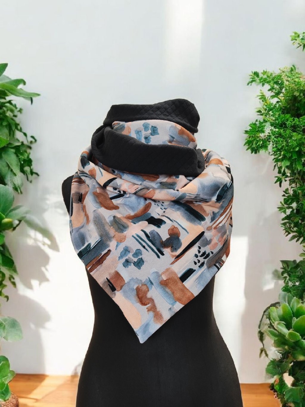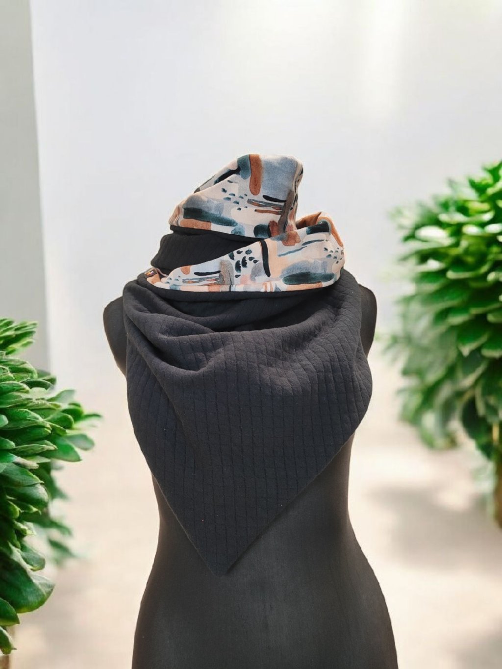 Oboustranná šála na knoflíky, Hnědé vzory/ černá prošívaná, kaz