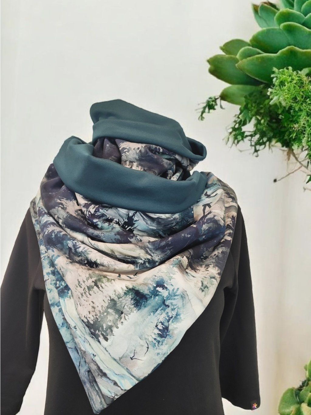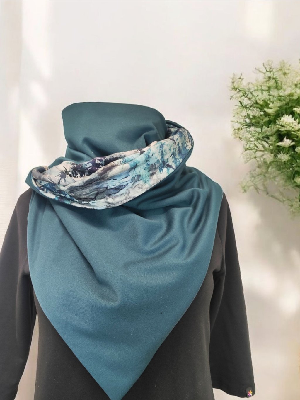 Oboustranná šála na knoflíky, Les/ petrolejová