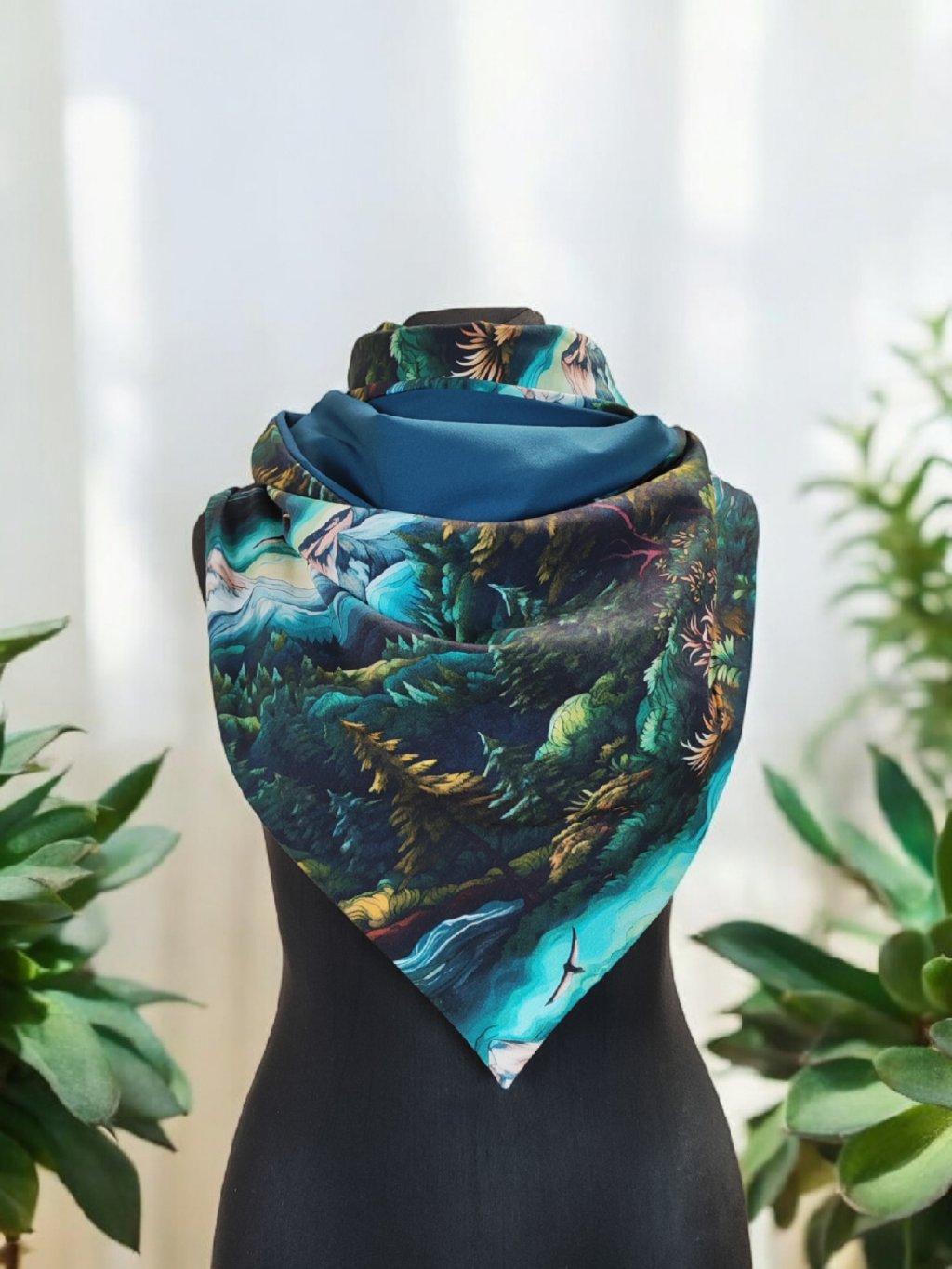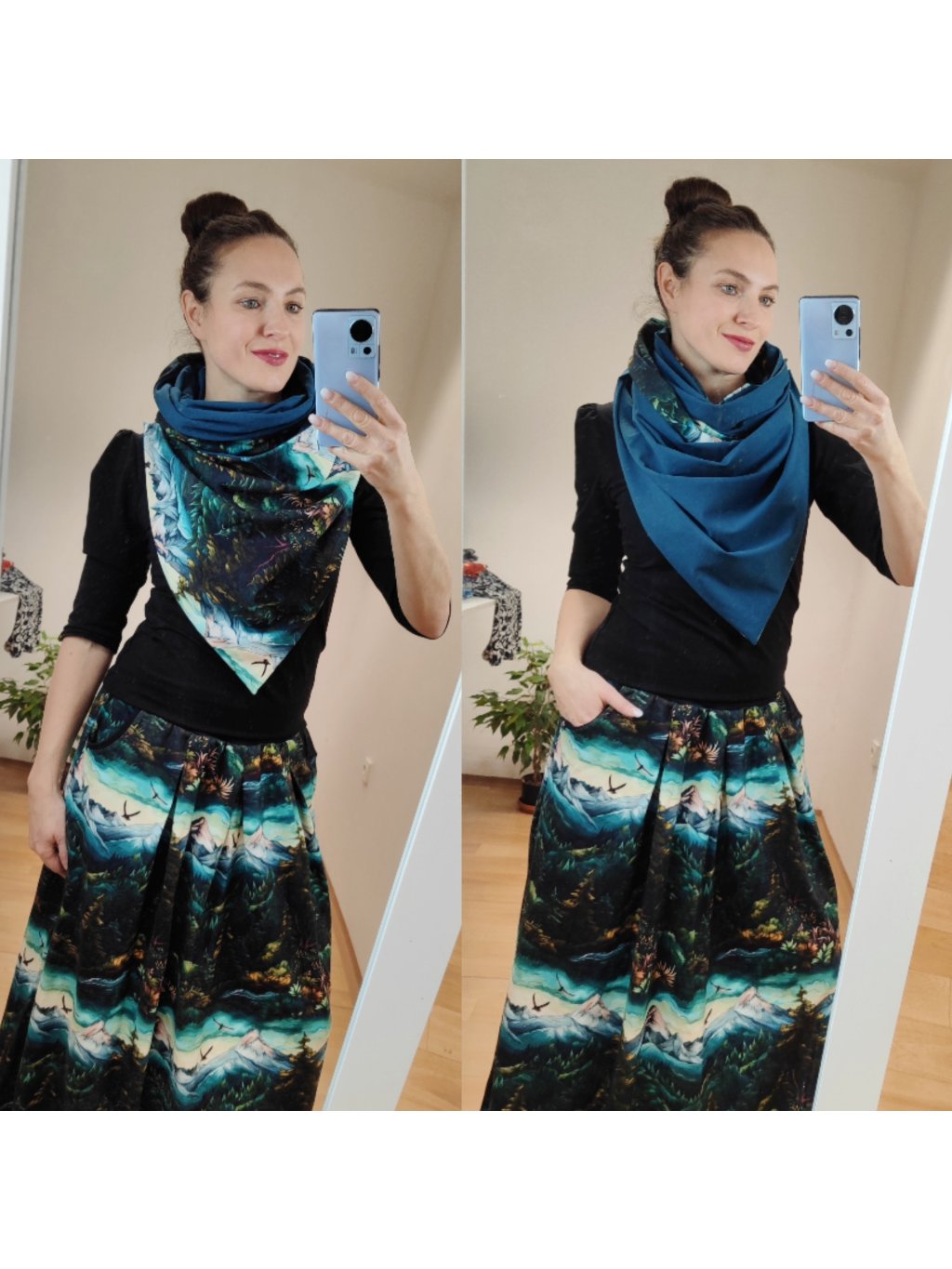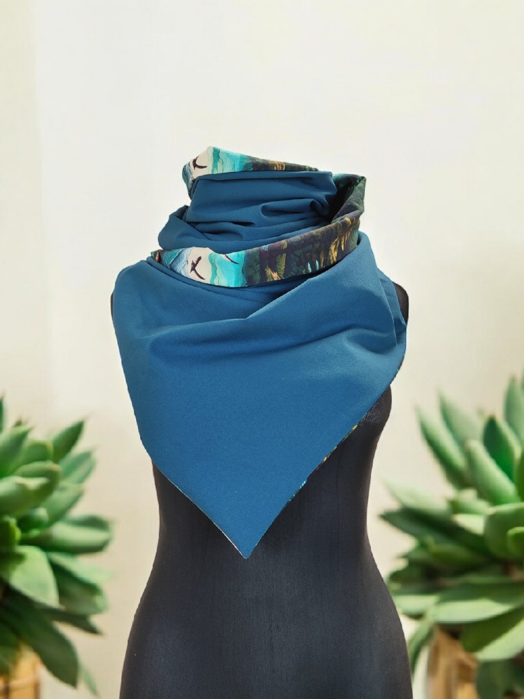 Oboustranná šála na knoflíky, Malované hory/ petrolejová mořská