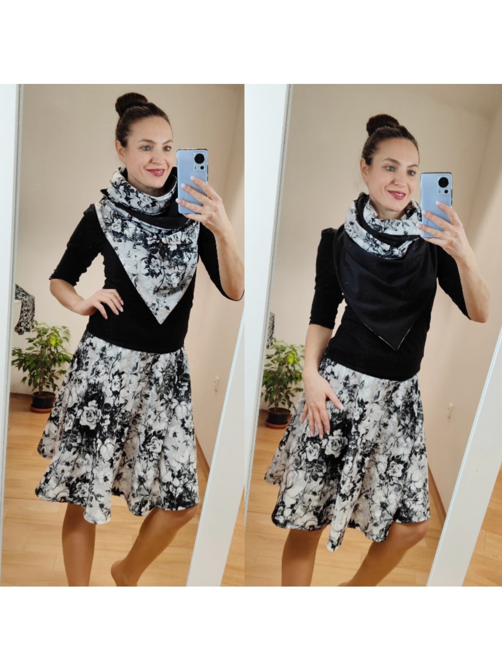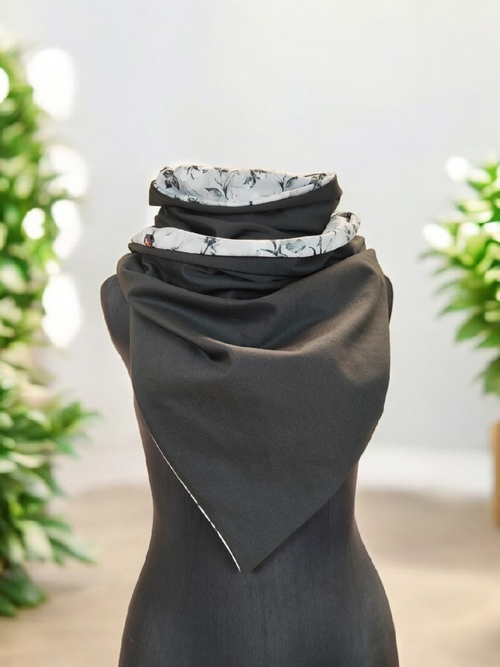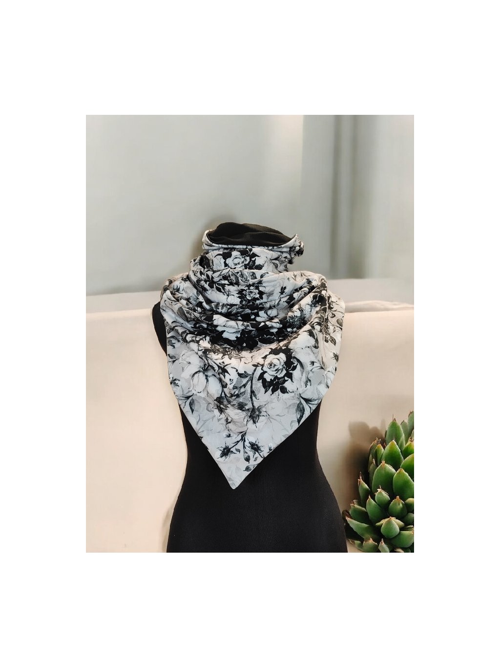Oboustranná šála na knoflíky, Popelavé růže/ černá