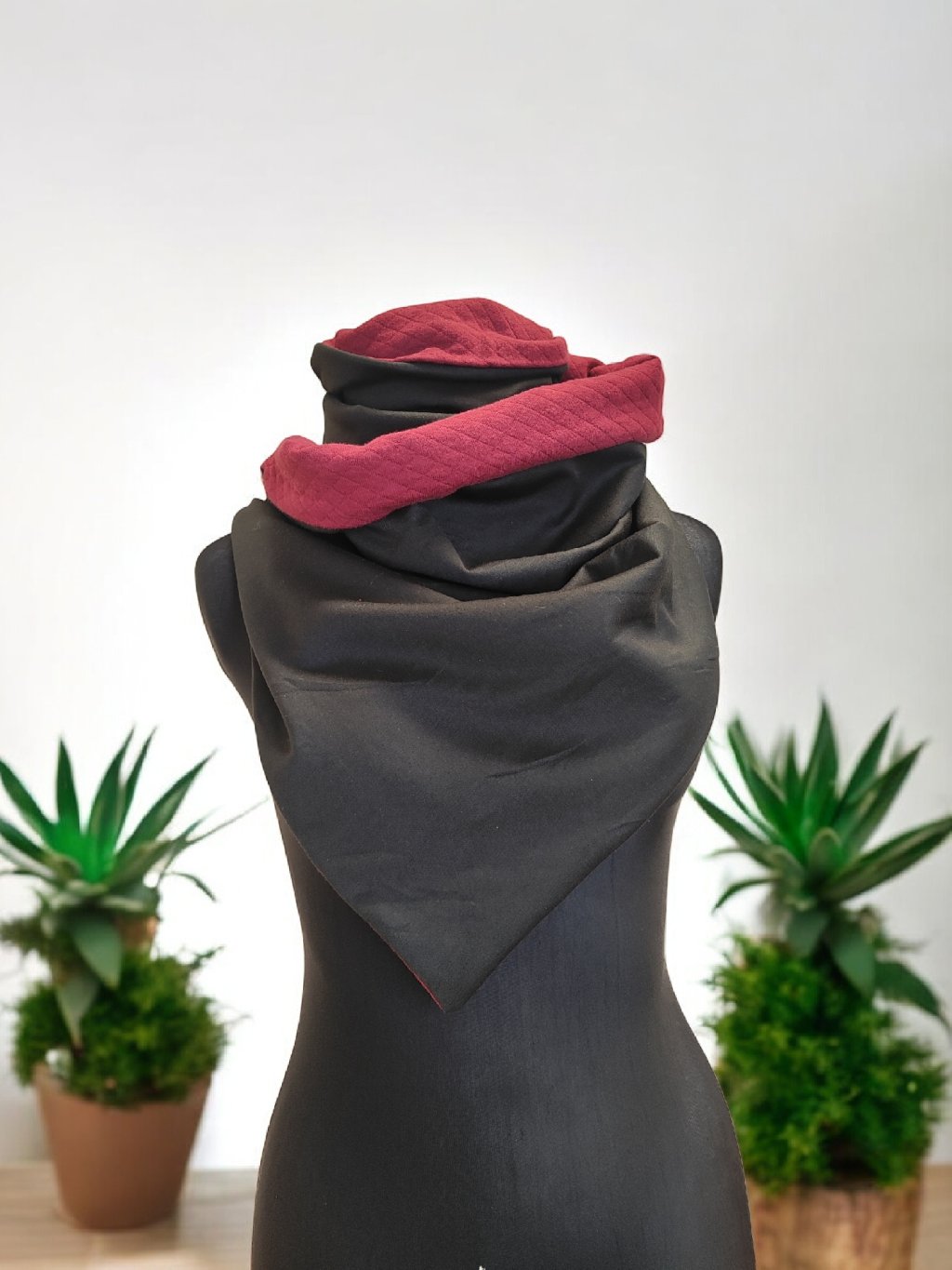 Oboustranná šála na knoflíky, prošívaná vínová/černá, 2. Jakost