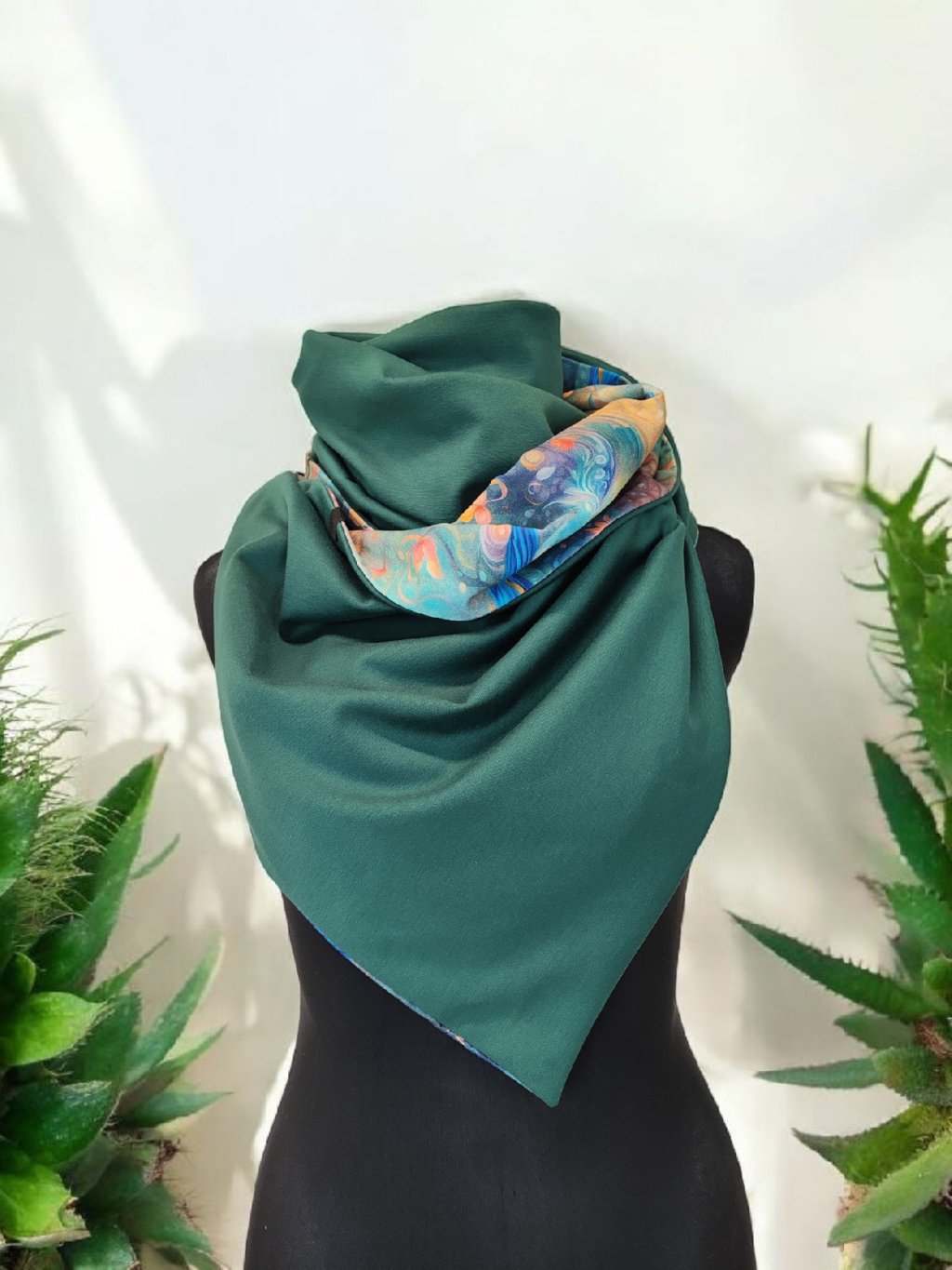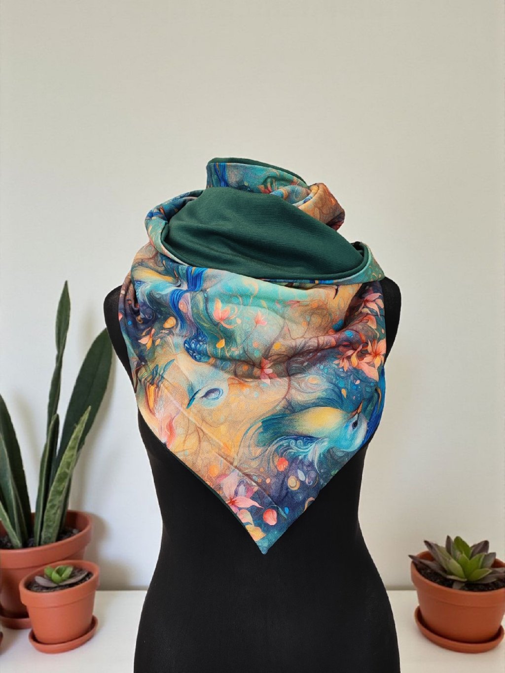 Oboustranná šála na knoflíky, Ptáčci/ zelená