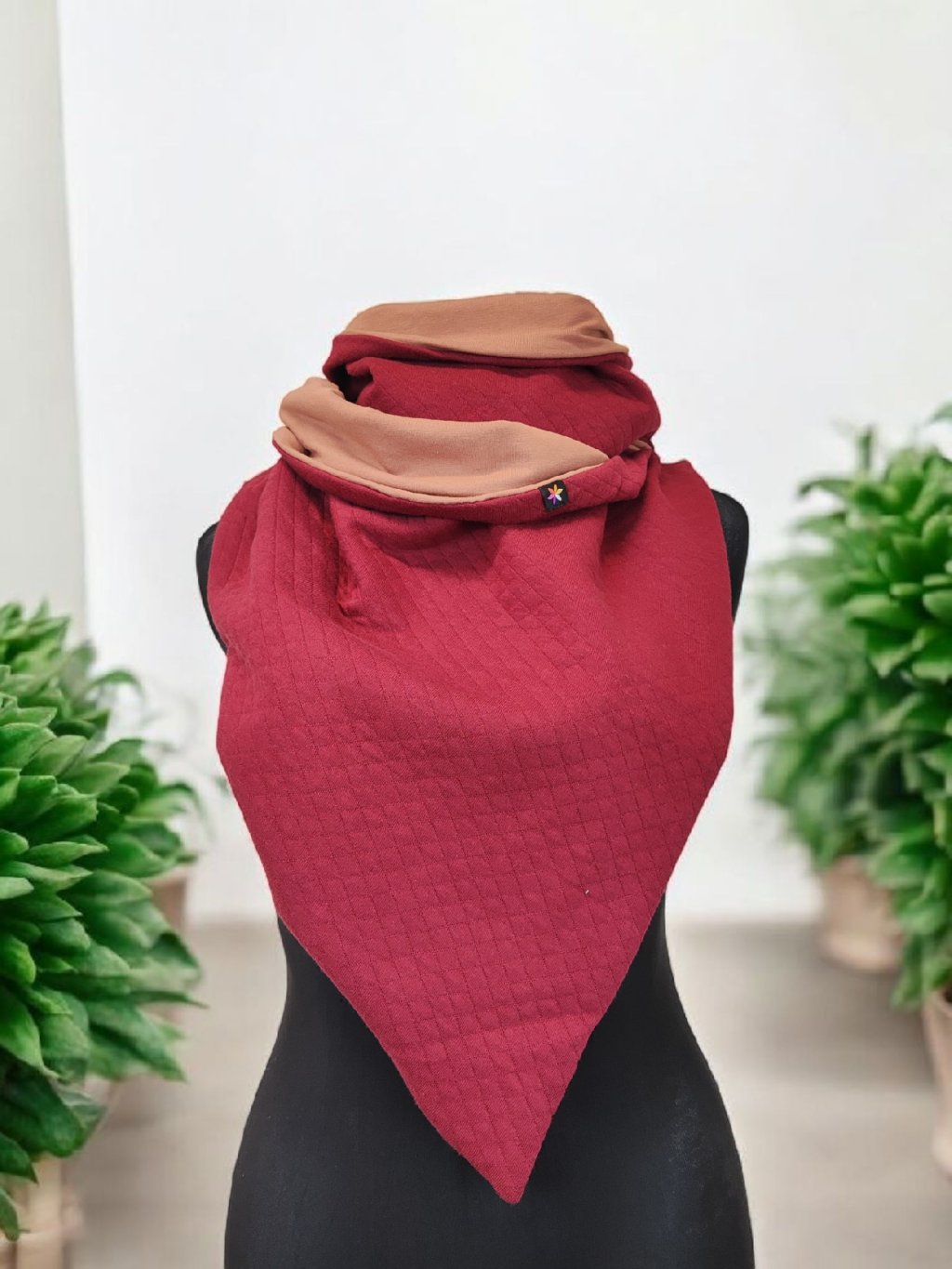 Oboustranná šála na knoflíky, světle hnědá/ vínová prošívaná