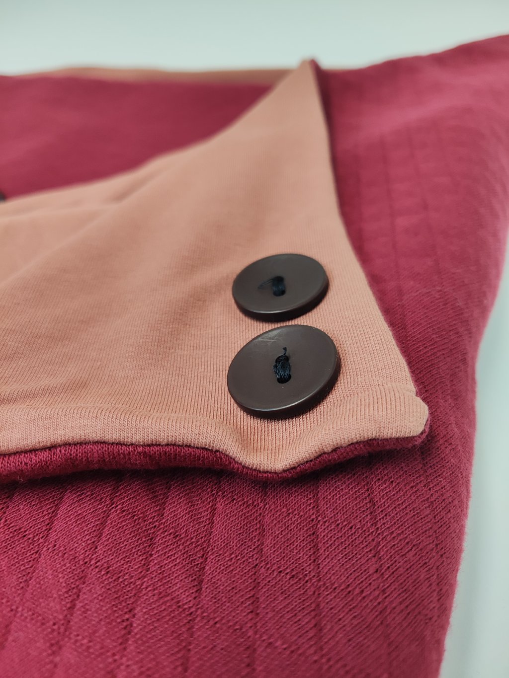 Naše dlouhá oboustranná šála na knoflíky je ideální společník od podzimu do jara. Jednoduše se zapíná na knoflíky, takže ji nemusíte složitě vázat – drží krásně sama a působí vždy upraveně. Díky oboustrannému provedení si můžete zvolit, která strana bude právě vidět – vzorovaná nebo jednobarevná. Materiál s příměsí elastanu je měkký, příjemný na dotek a dobře drží tvar. Šálu lze nosit přes kabát, svetr nebo šaty – zahřeje a dodá outfitu originalitu. Skvěle ladí s jednoduchými šaty nebo sukní z naší nabídky.