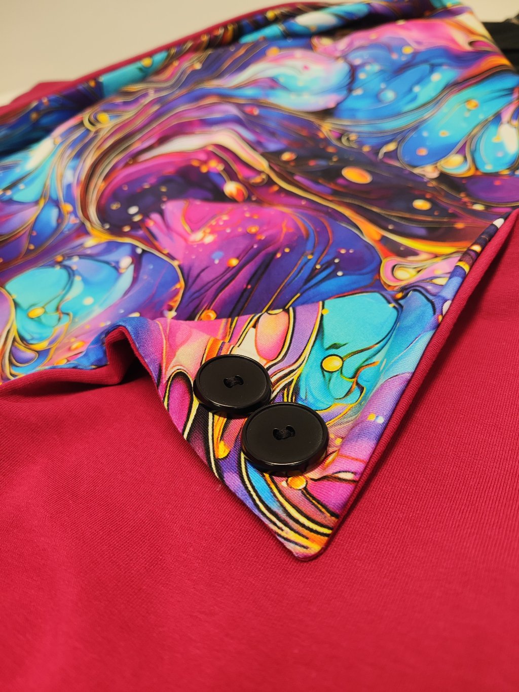 Naše dlouhá oboustranná šála na knoflíky je ideální společník od podzimu do jara. Jednoduše se zapíná na knoflíky, takže ji nemusíte složitě vázat – drží krásně sama a působí vždy upraveně. Díky oboustrannému provedení si můžete zvolit, která strana bude právě vidět – vzorovaná nebo jednobarevná. Materiál s příměsí elastanu je měkký, příjemný na dotek a dobře drží tvar. Šálu lze nosit přes kabát, svetr nebo šaty – zahřeje a dodá outfitu originalitu. Skvěle ladí s jednoduchými šaty nebo sukní z naší nabídky.
