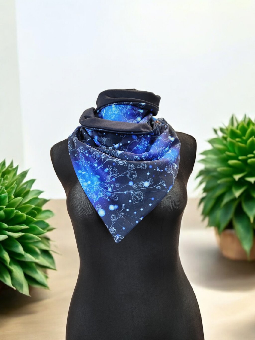 Oboustranná šátko-šála na knoflík/ krátká šála na knoflík Modrá záře/tmavě modrá