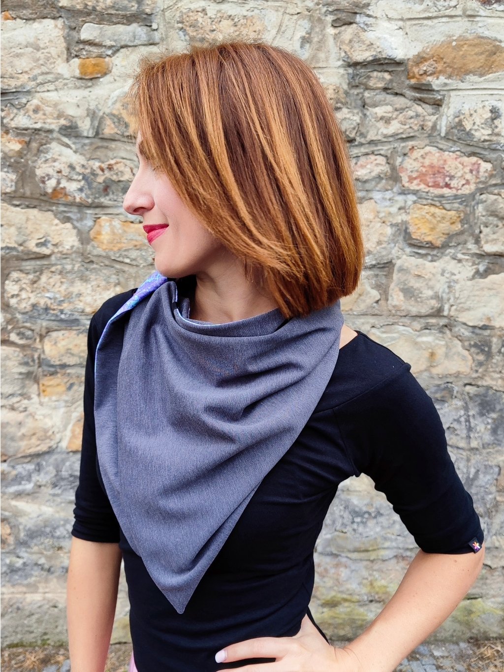 Oboustranná šála na knoflík se hodí od podzimu do jara. Je hřejivá.