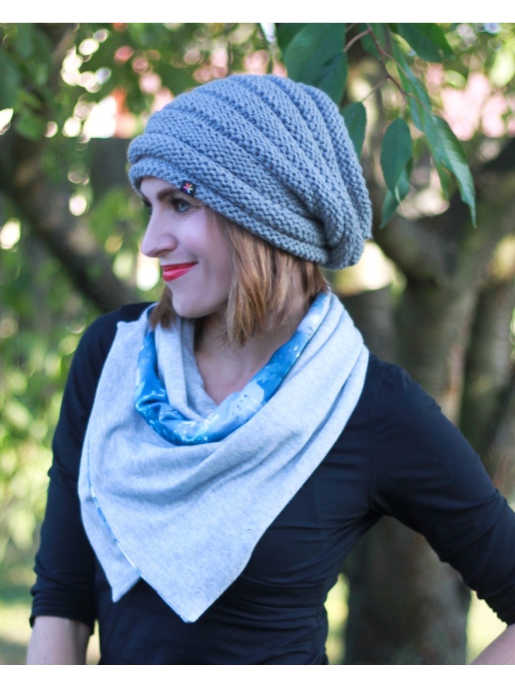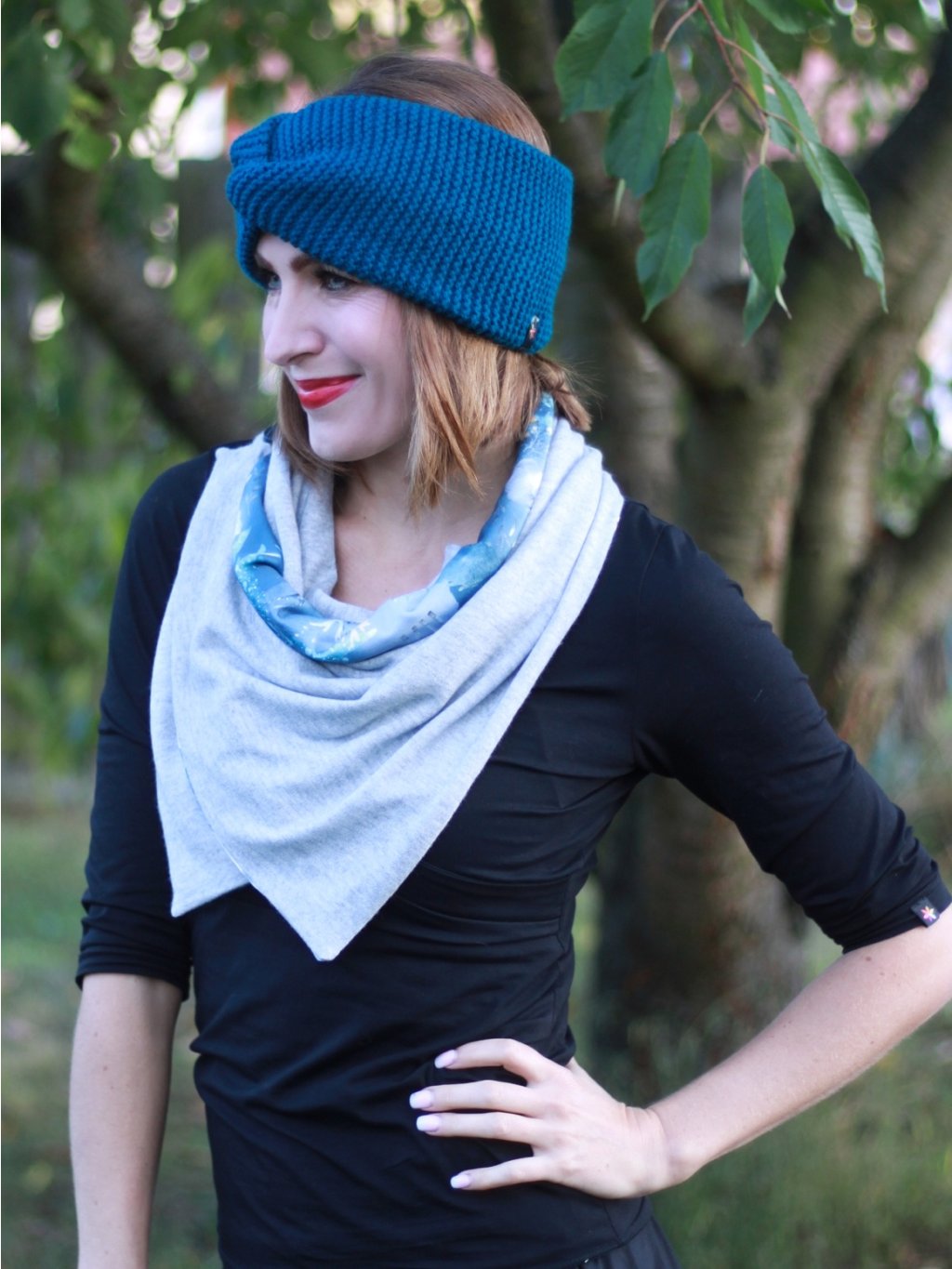 Oboustranná šála na knoflík se hodí od podzimu do jara.