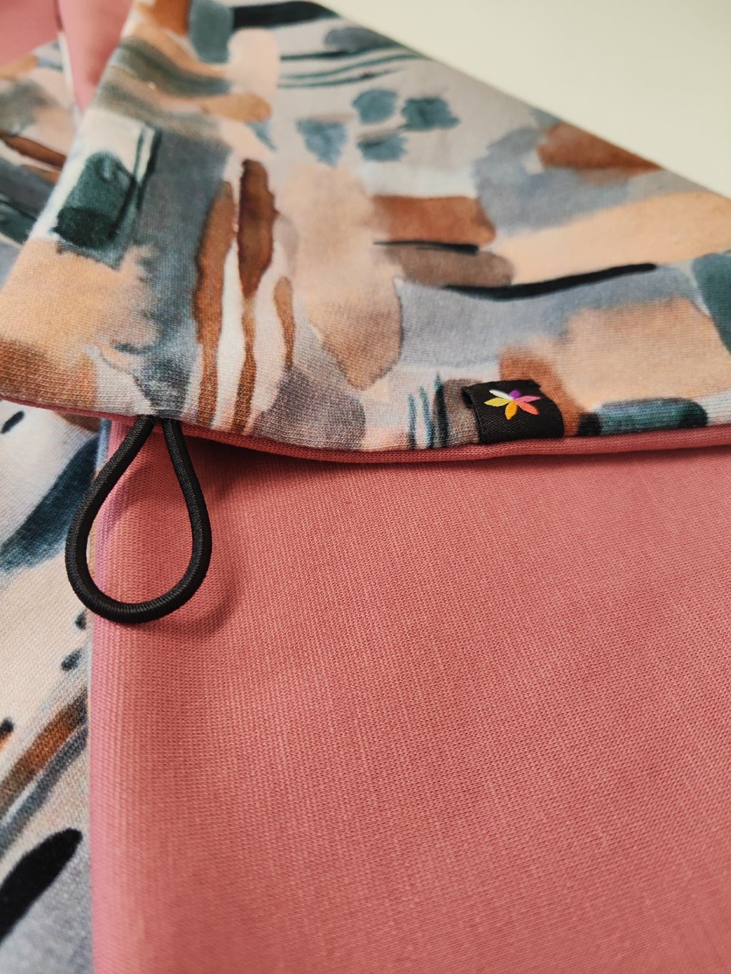 Oboustranná šátkošála na knoflík/ krátká šála na knoflík, béžové vzory/ starorůžová