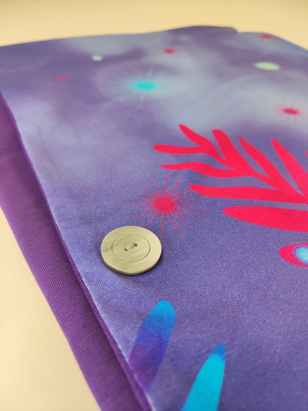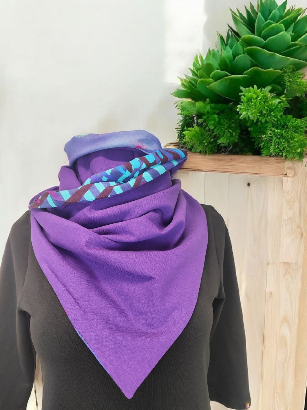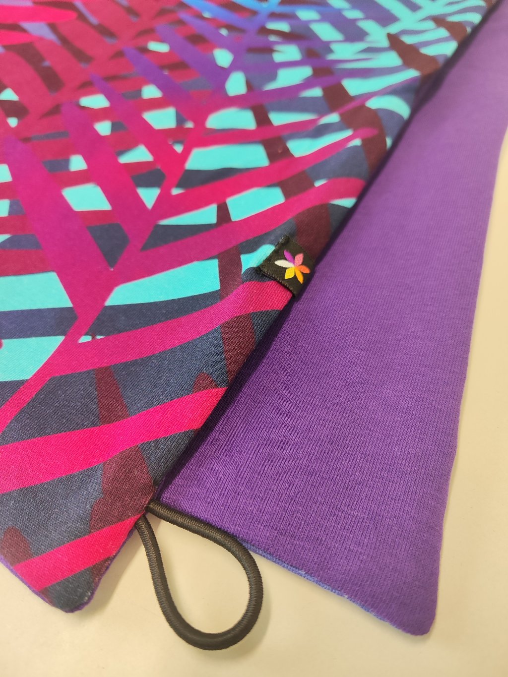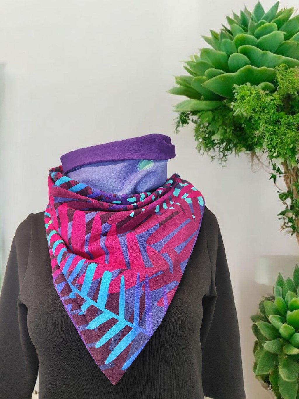 Oboustranná šátkošála na knoflík/ krátká šála na knoflík, Kapradí/ fialová