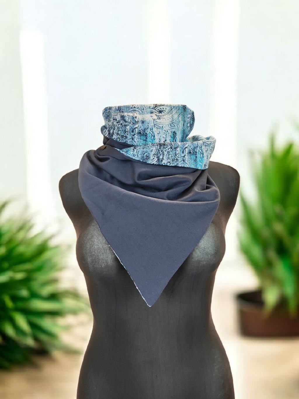 Oboustranná šála na knoflík se hodí od podzimu do jara.