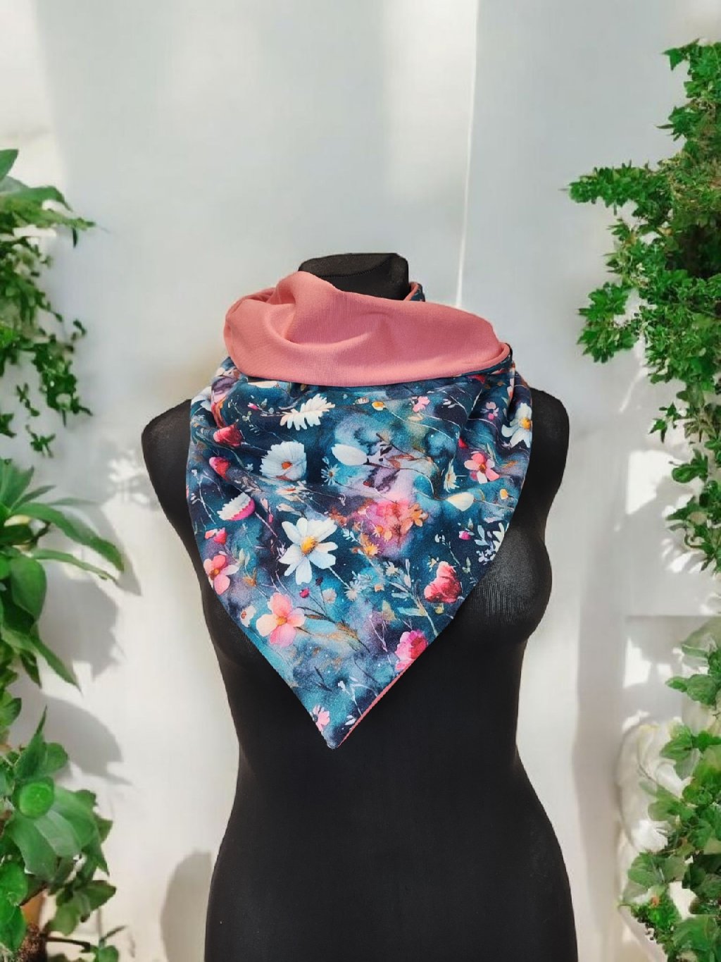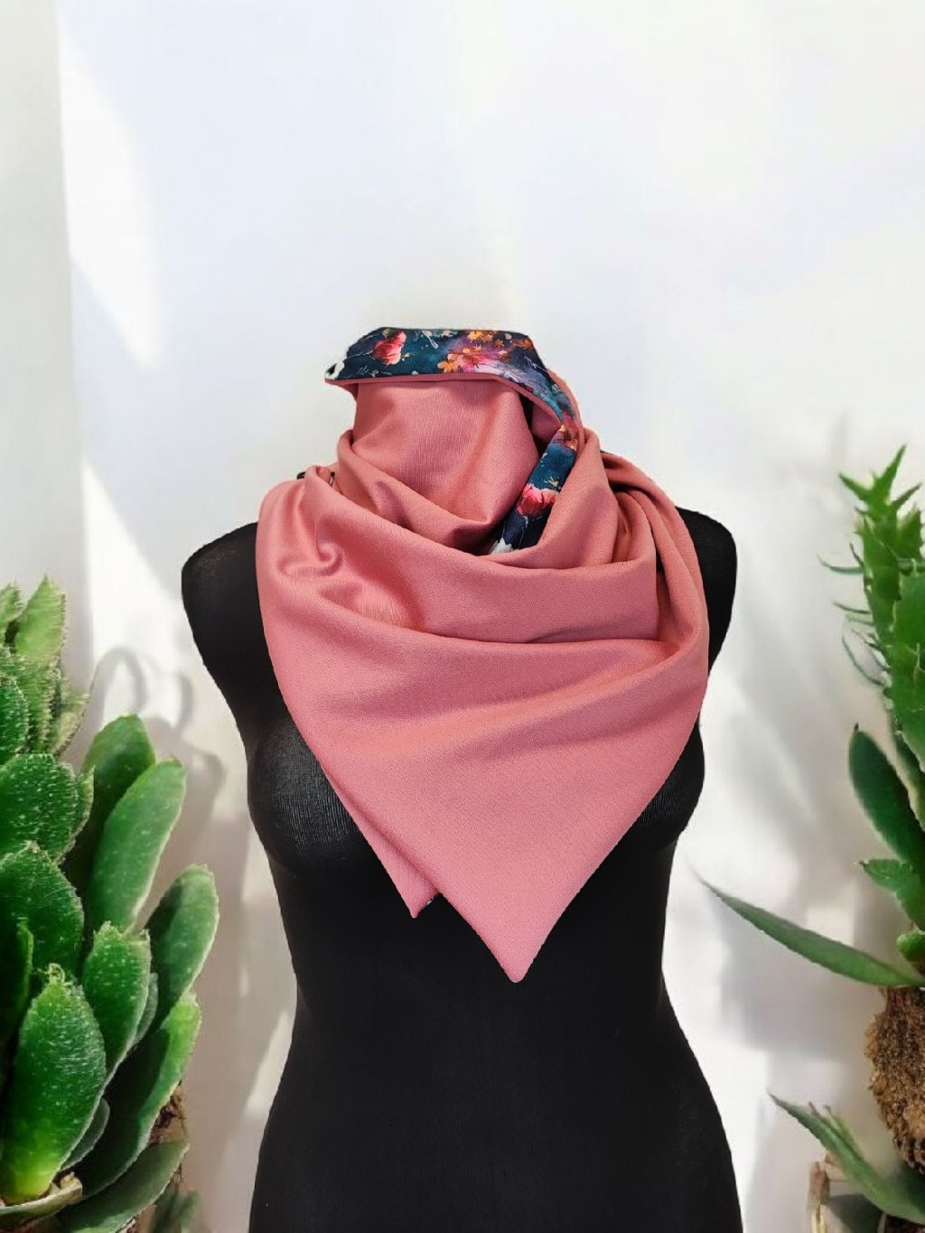 Oboustranná šátkošála na knoflík/ krátká šála na knoflík, Noční květy/ starorůžová